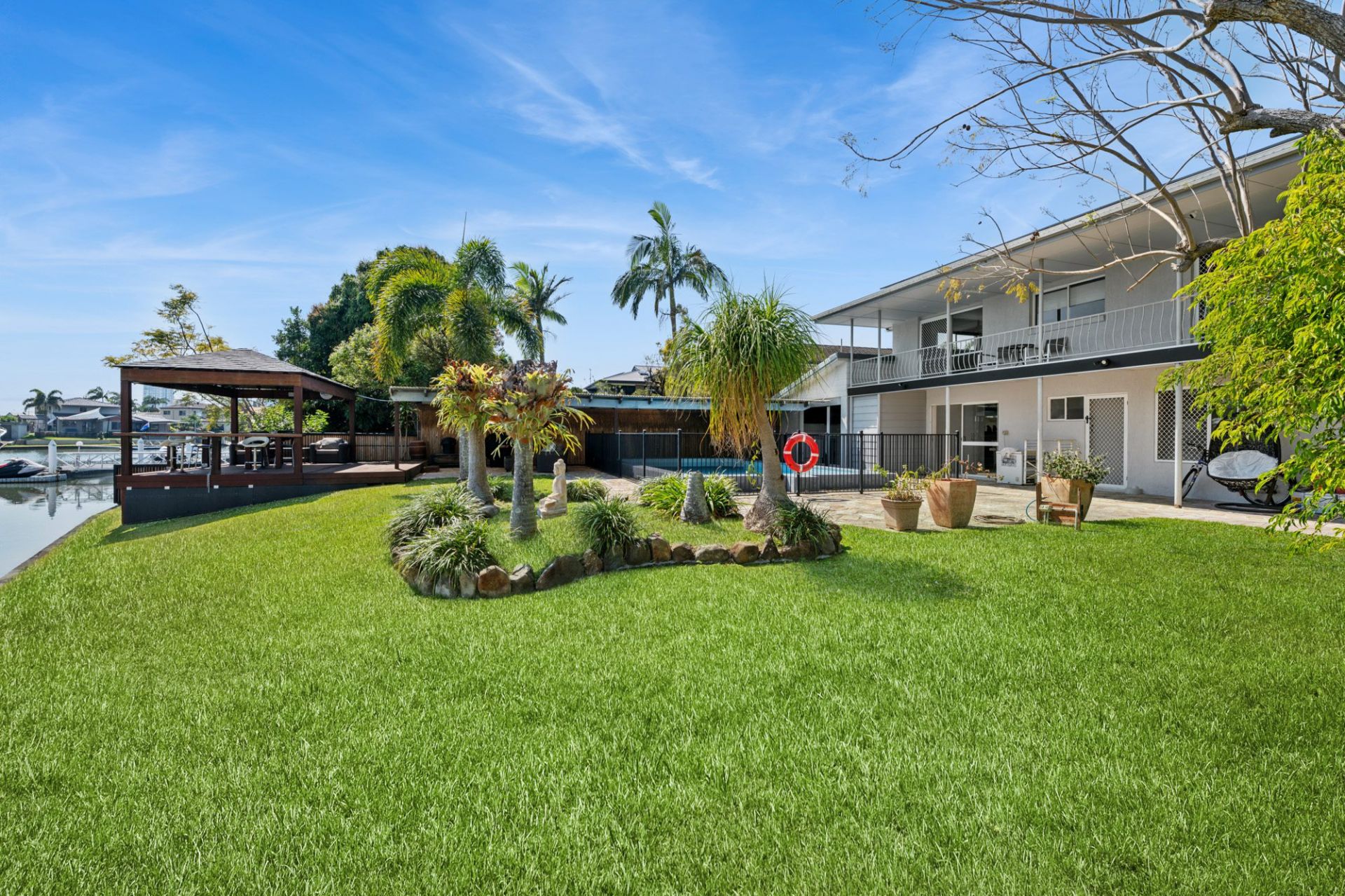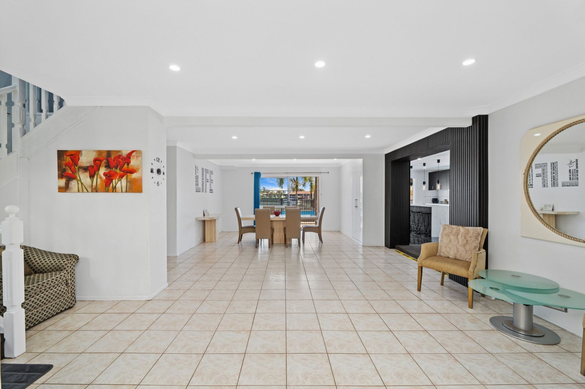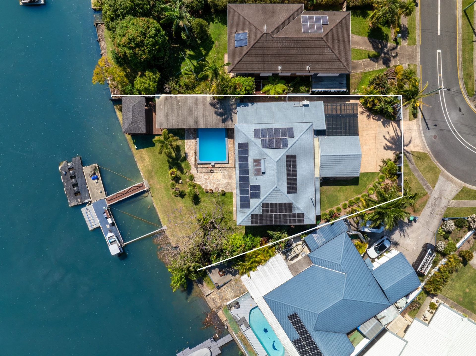The outdoor areas are perfectly designed for entertaining and relaxation, the extensive water frontage features an oversized swimming pool and a large, covered timber deck, providing an ideal setting for enjoying sunset drinks and hosting impressive barbecue parties.