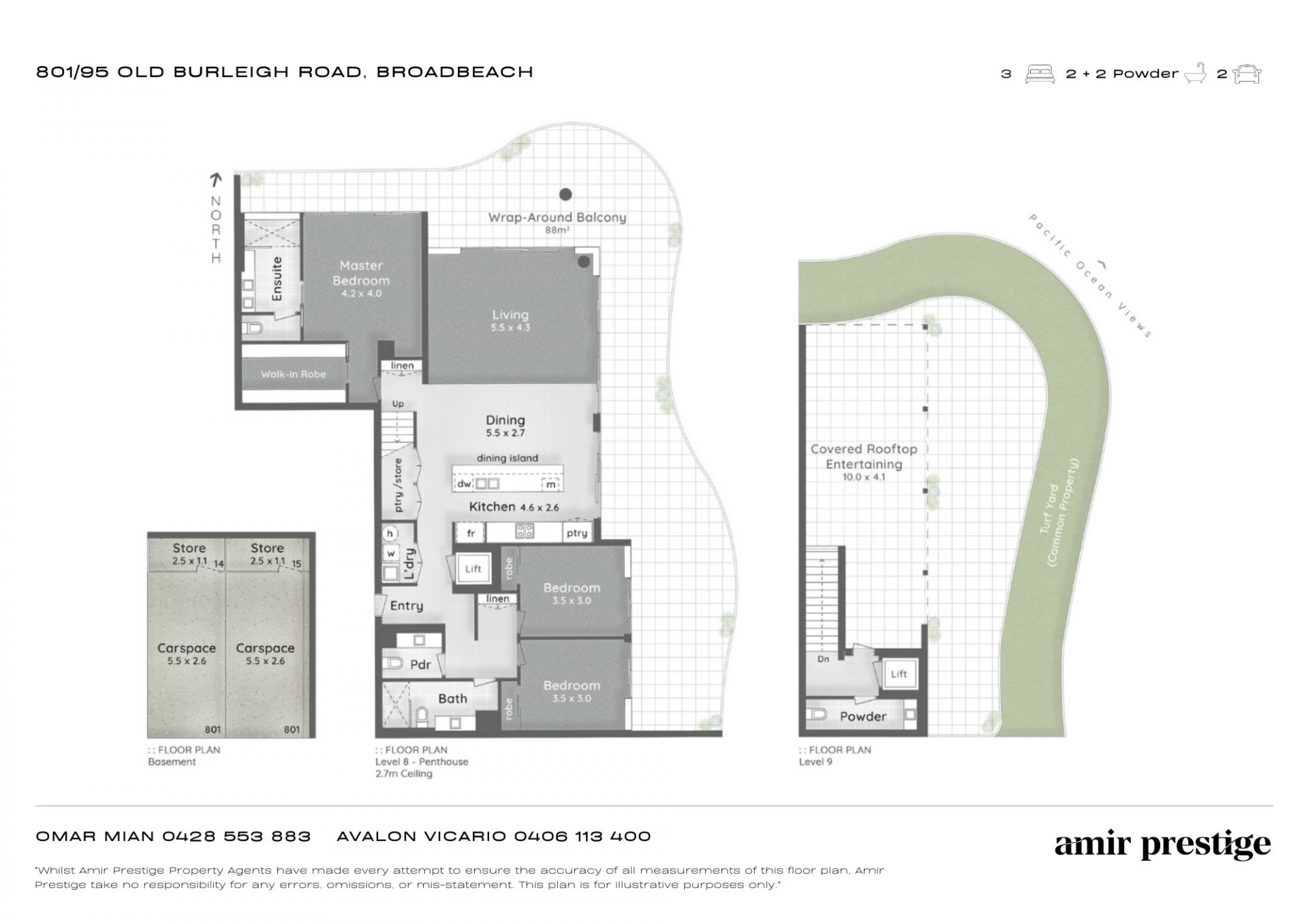2.5 bathrooms, including a luxurious master suite with walk-in robe, ensuite, and private balcony