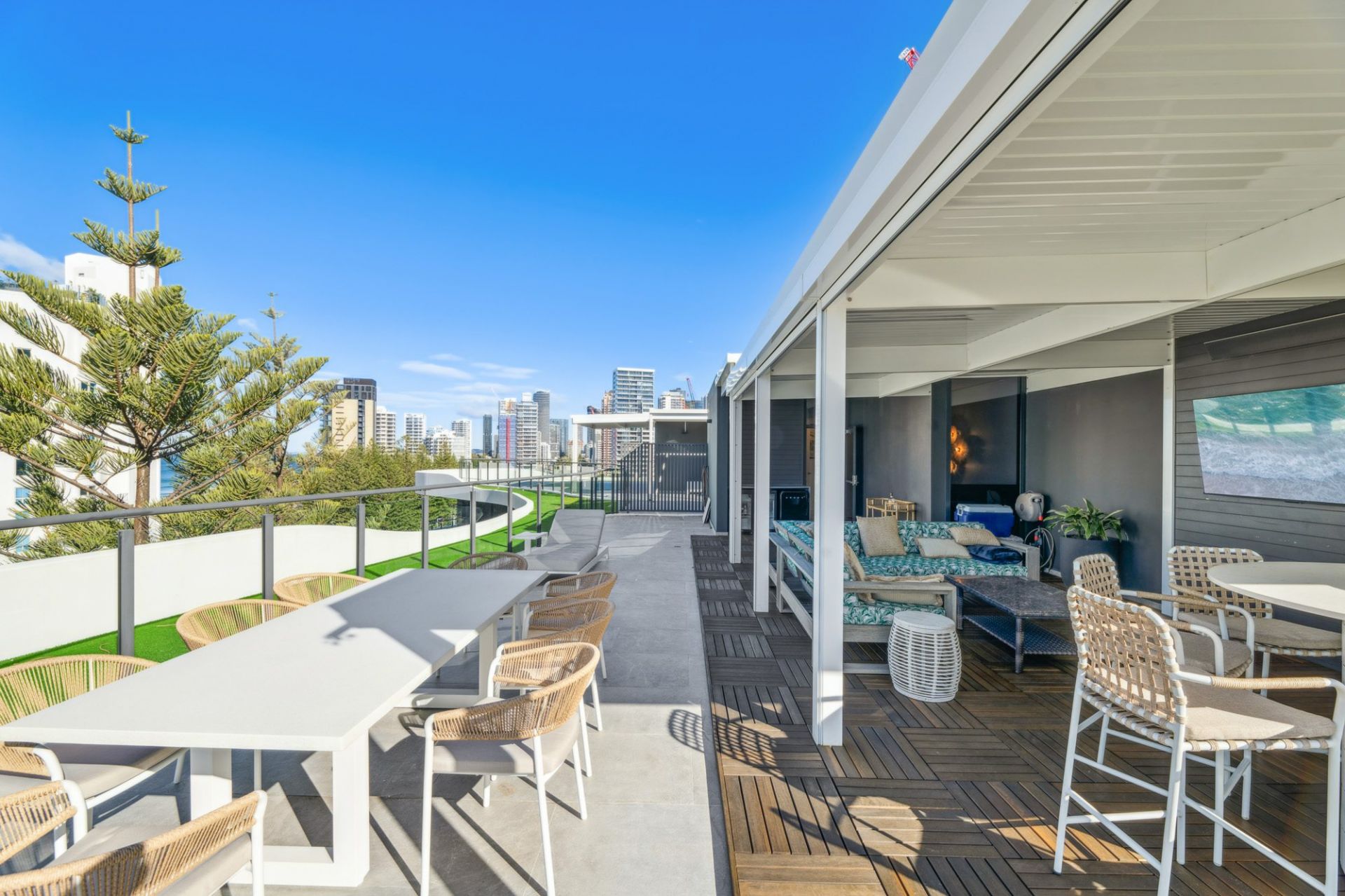 Linen sheers throughout & Zip screen remote blinds on the rooftop terrace with automatic wind-sensor retraction