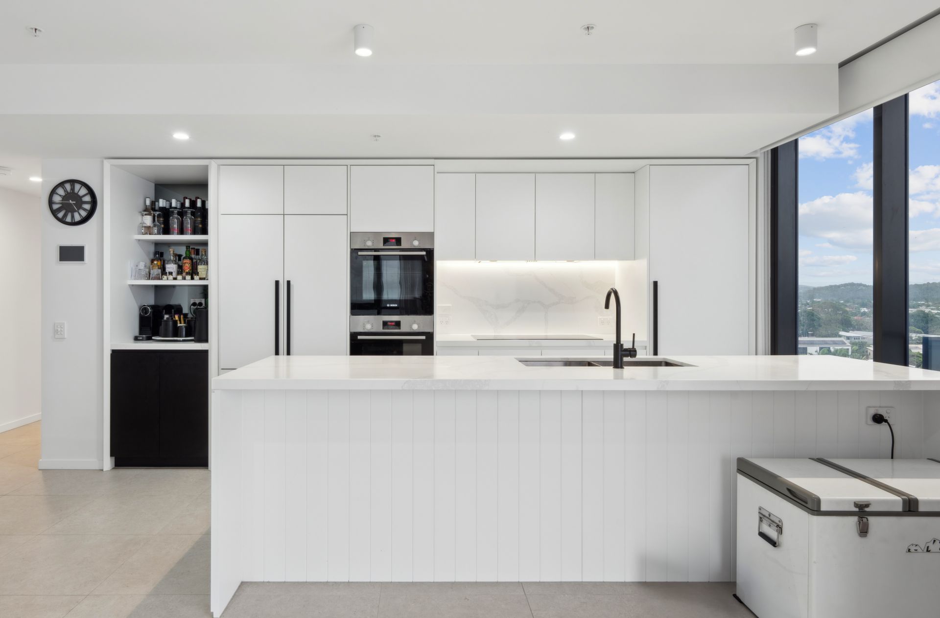 Designer kitchen with stone benchtops & high-end appliances