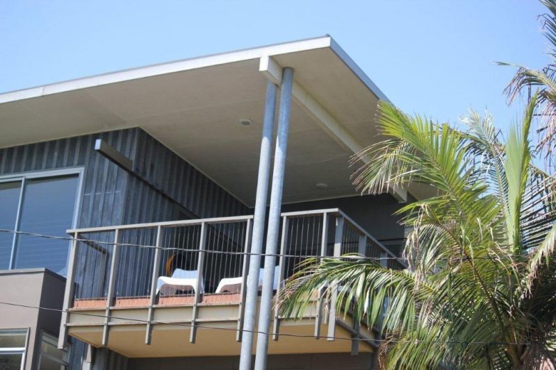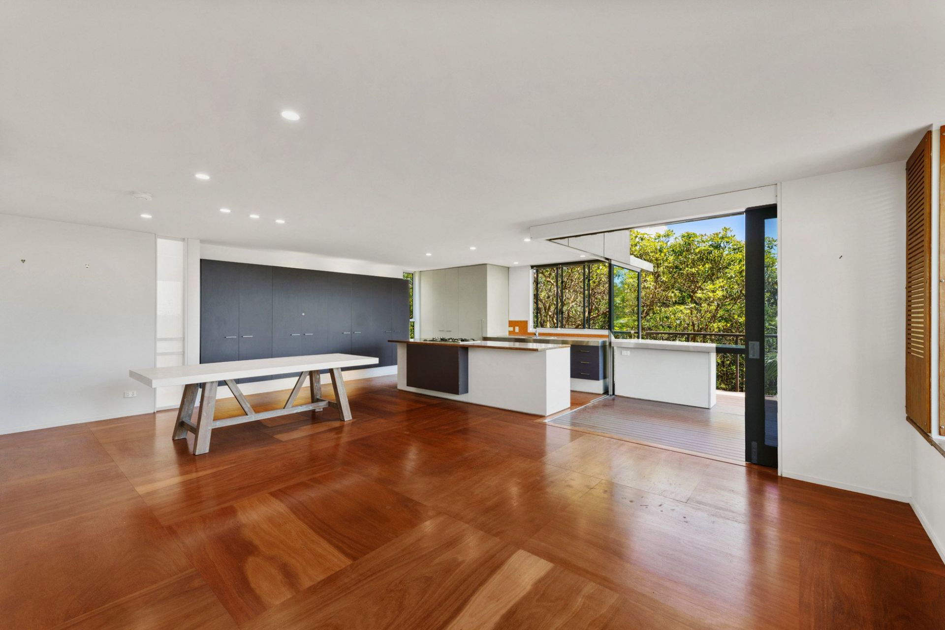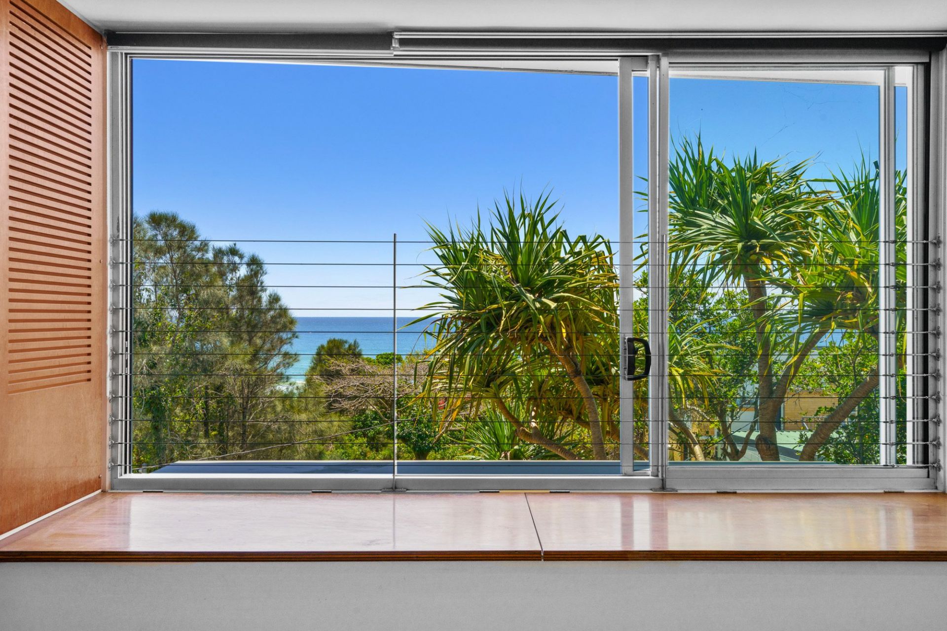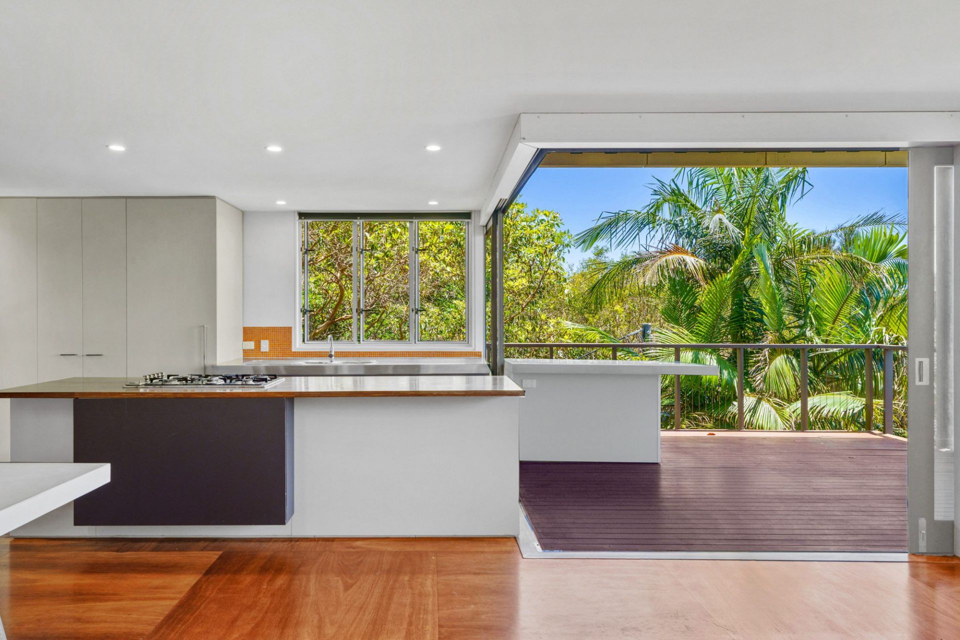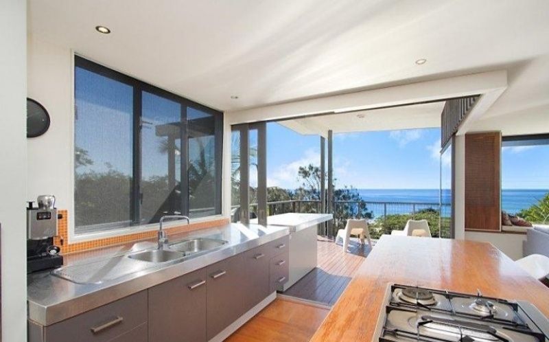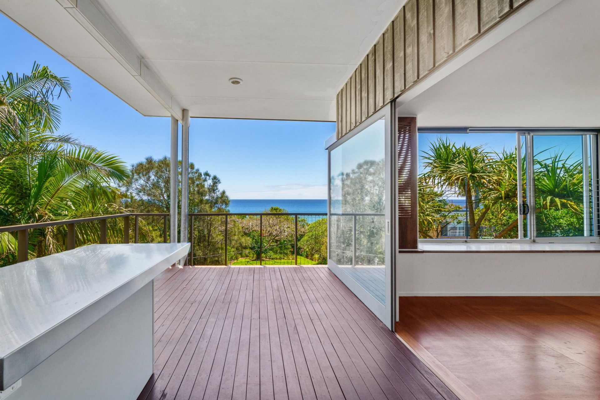 Nestled amongst tropical bushland, this modern house is tucked away in the serene and well maintained location, perched on a ridge between Currumbin and Tugun about 80 meters above the beach. It sits adjacent to a coastal reserve and has private access to Flat Rock beach.