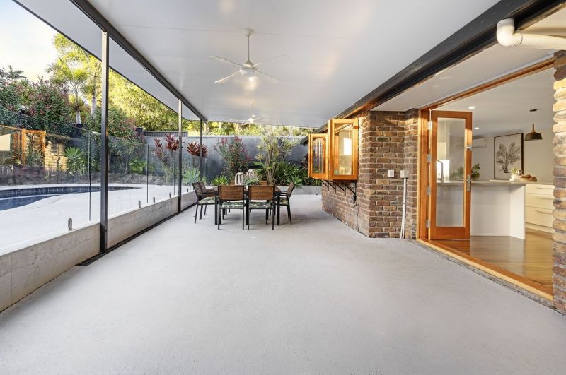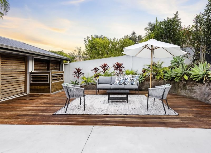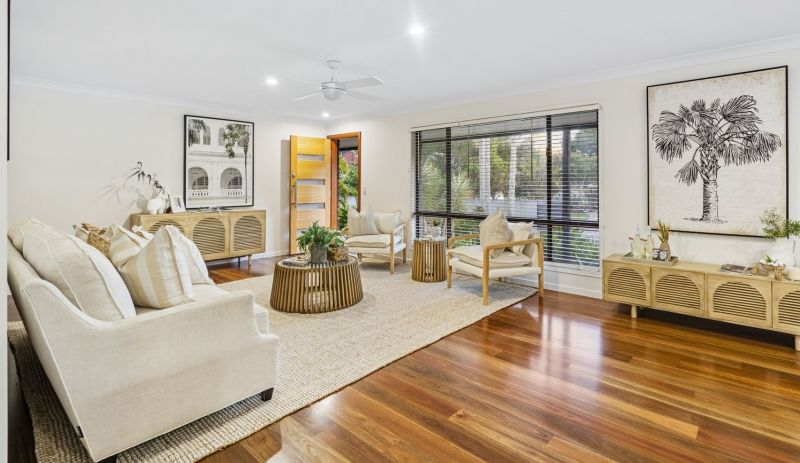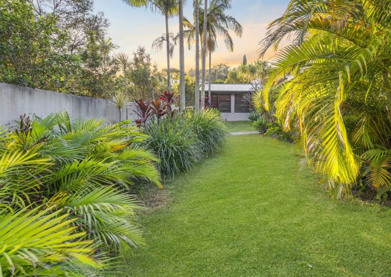 Outdoors, the impressive lifestyle offering continues with secure fencing ensuring a private oasis of superior entertaining and living zones, including a sparkling inground swimming pool, timber sun deck and fire pit, alfresco all-weather entertaining and lush tropical gardens and well-established lawns providing boundless fun for the kids and pets to run and play. Dual street entrances offer plenty of off-street parking, including a double remote garage and secure accommodations for trailer, camper or boat.