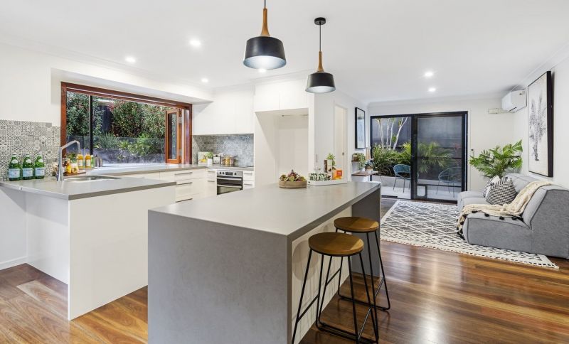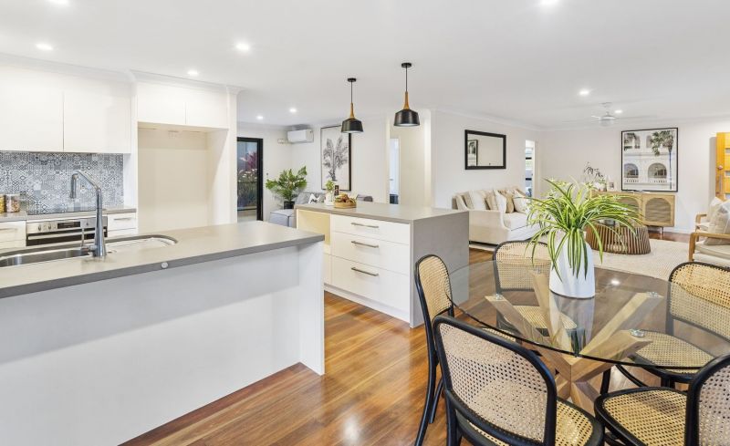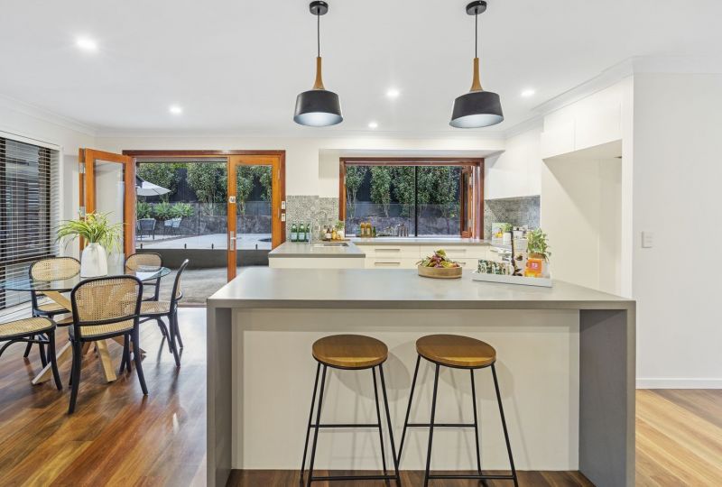 The centrally positioned stone entertainer's kitchen offers the perfect vantage point for entertaining in style with plenty of preparation and storage, including breakfast island, streamlined cabinetry, premium appliances and large servery window to the outdoor space. An adjacent informal space offers plenty of opportunity for a home office, kid's play area or extend the kitchen with a fully integrated butler's pantry and laundry combination the options are limitless.