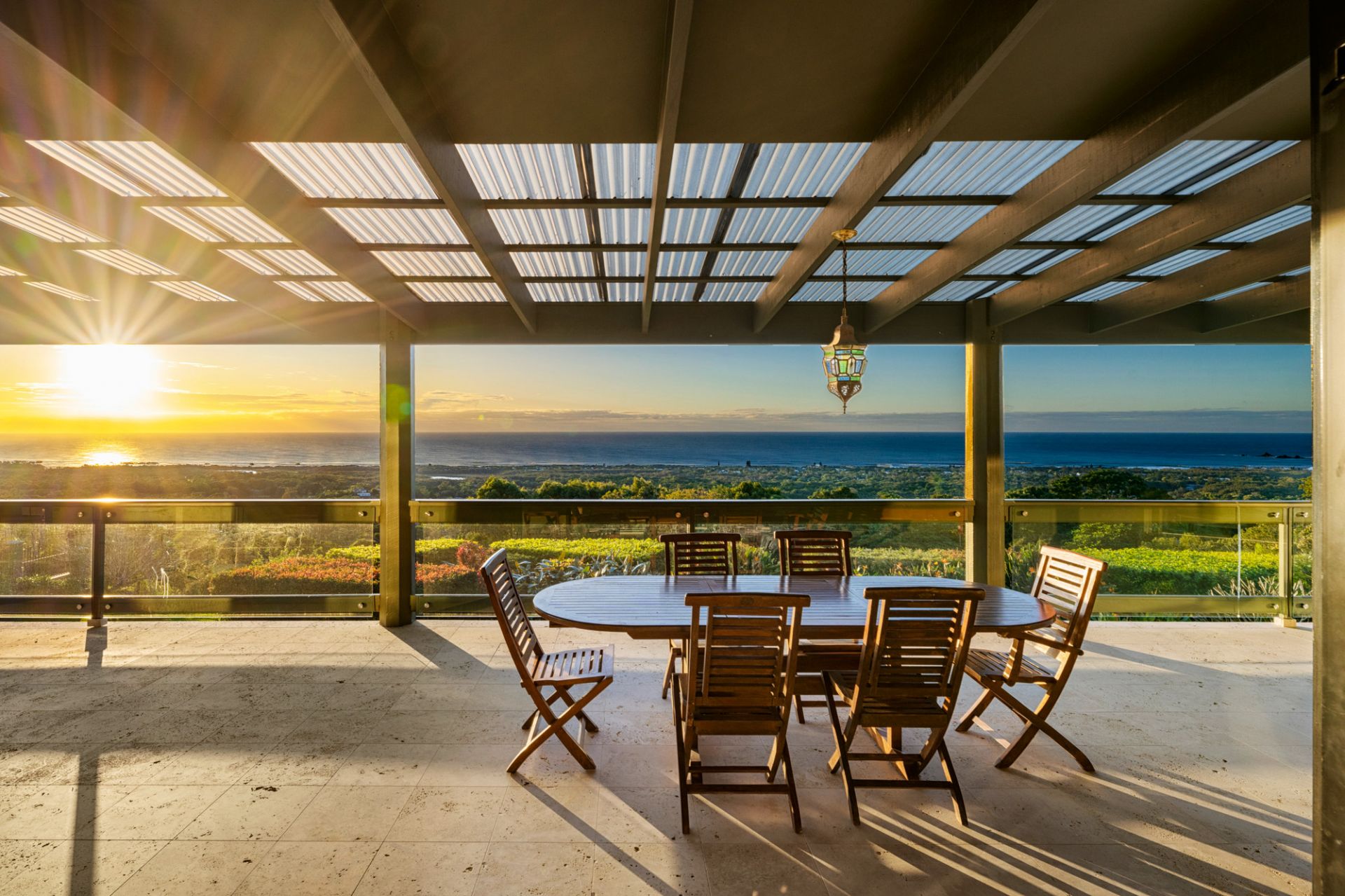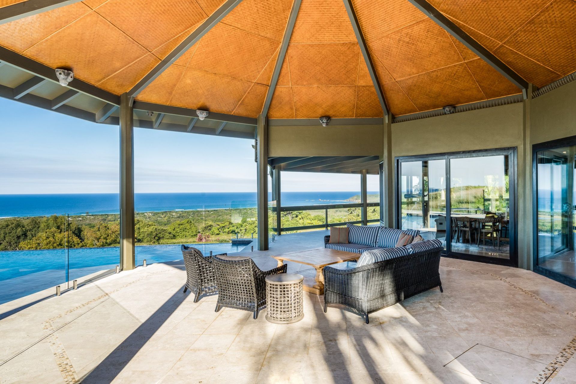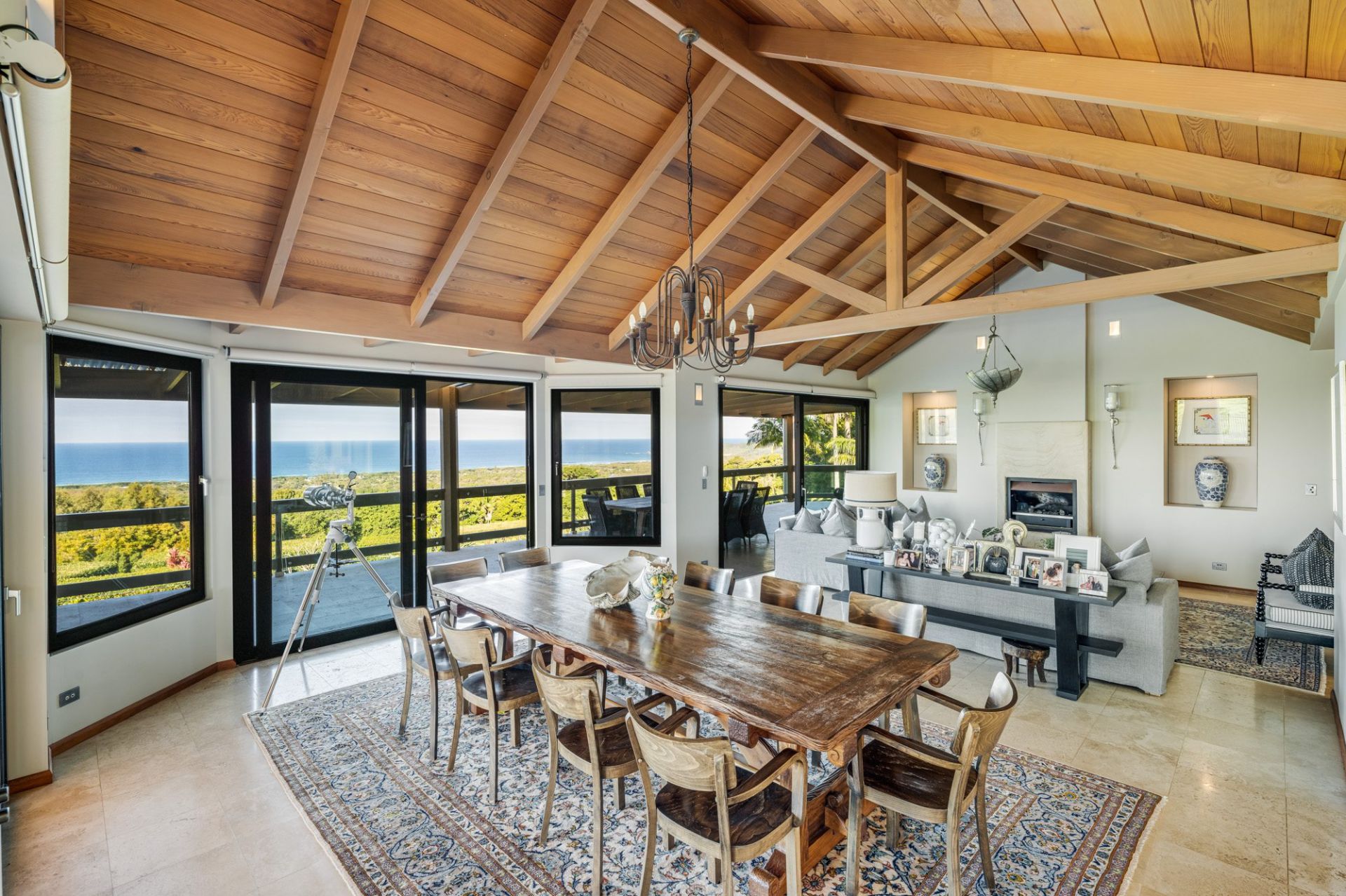 At the heart of the property sits the remarkable main residence, occupying the most coveted location on the acreage. This grand and spacious 5-bedroom concrete masterpiece, situated just beyond the championship tennis court, treats its occupants to awe-inspiring views that accompany them throughout. Impeccably adorned with travertine and locally sourced timber finishes, the main residence features two master suites, a chef's kitchen, multiple living and dining areas, and an alfresco terrace that immerses guests in breathtaking coastal panoramas. Whether enjoying the infinity-edge pool as the sun dances on the ocean or hosting unforgettable gatherings as dusk settles, this residence epitomizes coastal luxury.