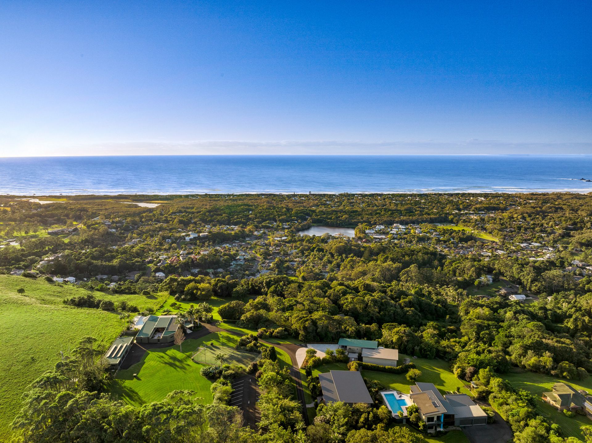 Perched approx. 110m* above sea level, "Hercules" offers a peerless vantage point, revealing Byron Bay's most breathtaking vistas. This exceptionably rare estate represents the epitome of perfection, boasting approx. 13.88* acres of east-facing land along the coveted Byron escarpment. Its unrivalled lifestyle, luxurious amenities, and serene ambiance make it an unparalleled estate of global significance. With its majestic position overlooking the endless Pacific Ocean, Broken Head, and Cape Byron lighthouse, "Hercules" encompasses the Main Residence, Training Centre including offices, meeting room, facilities & parking (for specific purposes use only), Tennis Court, and secondary dwelling for the Health Studio (meditation room, office, meeting room & facilities). This contemporary compound seamlessly blends work and pleasure, offering an exclusive experience that will never be replicated. Minutes to local cafes, golf course, world famous surf beaches, Byron Bay town centre.