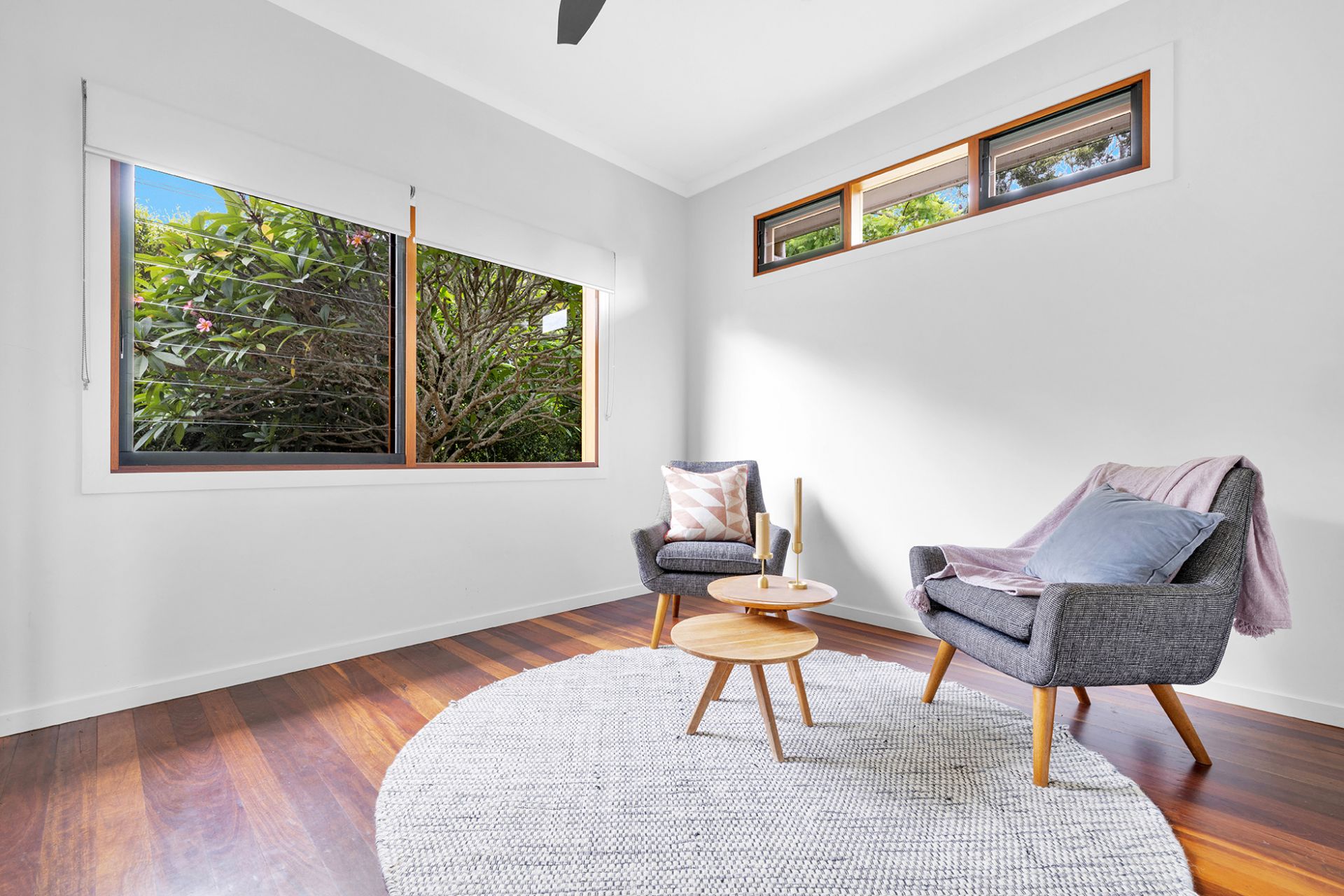 Just walking into the home, one is met with tall ceilings and beautiful origianl hardwood timber floors – everything works together from the old to the new with great harmony. The renovations expertly done by a master builder renown in the area are flawless, with decorative timber window frames, doors and servery. The layout flows with 2 bedrooms and a study, very large bathroom, dedicated laundry plus the living room and kitchen dining space. All of which leads out onto the massive covered deck which more than doubles your living space looking out to the horizon!