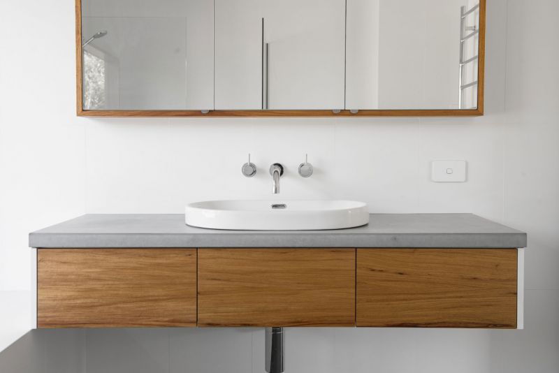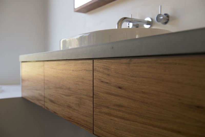 • Beautiful kitchen with concrete bench tops and built in Leibherr fridge and freezer