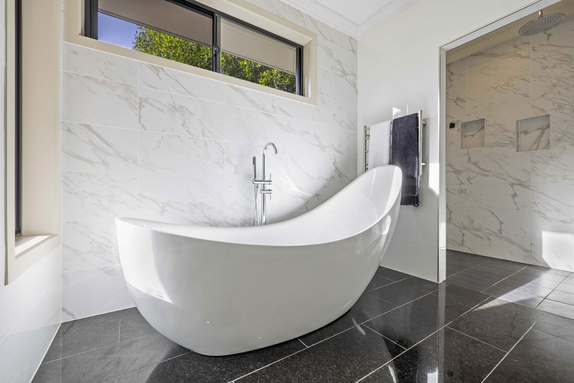 Each bedroom is a carpeted sanctuary for deep rest and enjoyment with built-in robes. The rockstar master bedroom facing the reserve is large, well-lit and made all the more epic with it's sensationally generous walk-in robe and superbly appointed ensuite bathroom with double shower-rose.