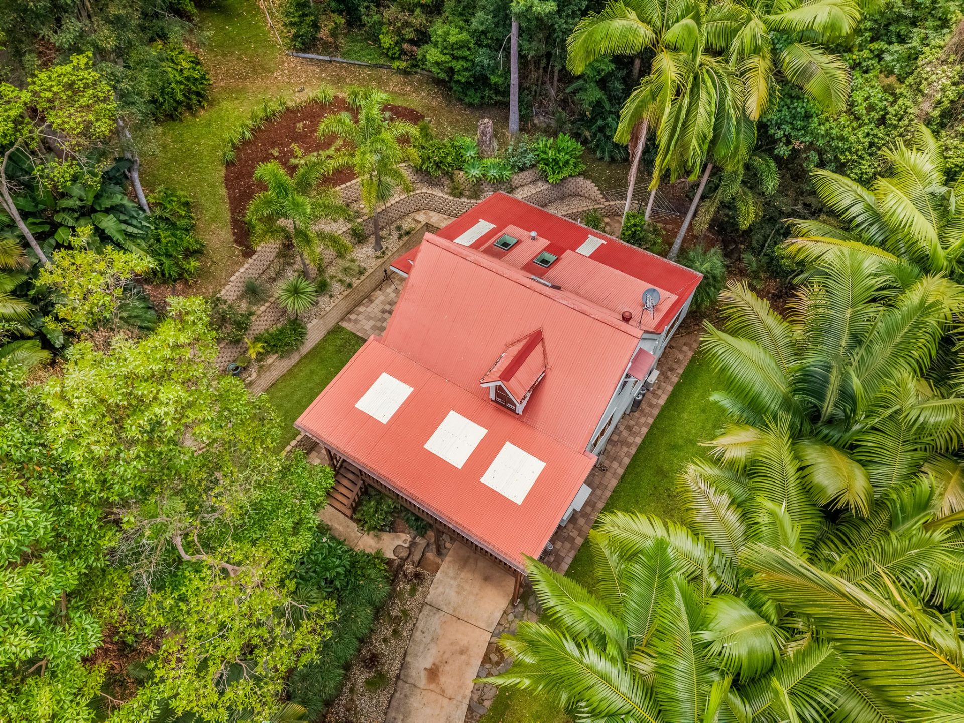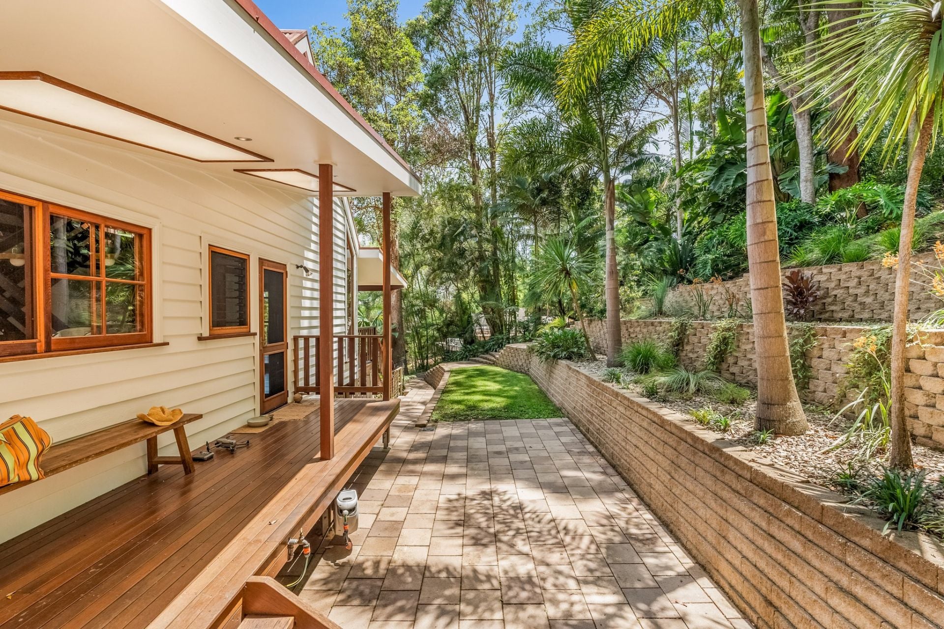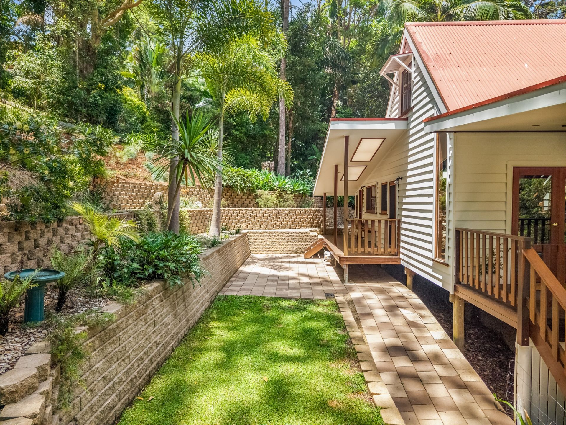 The home is situated on a 1290 square metre* block with terraced landscaped gardens, lawn and tiled patio areas.