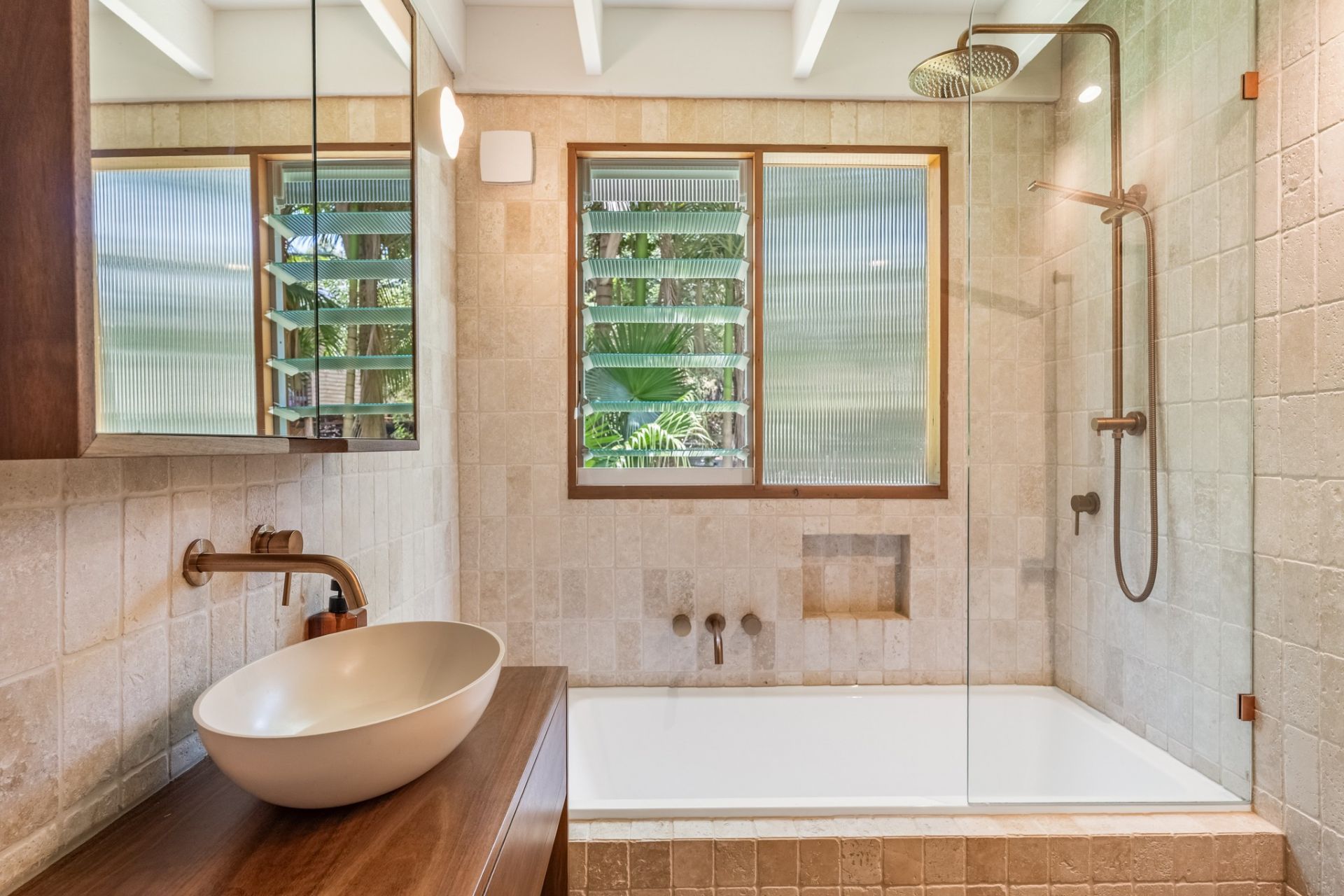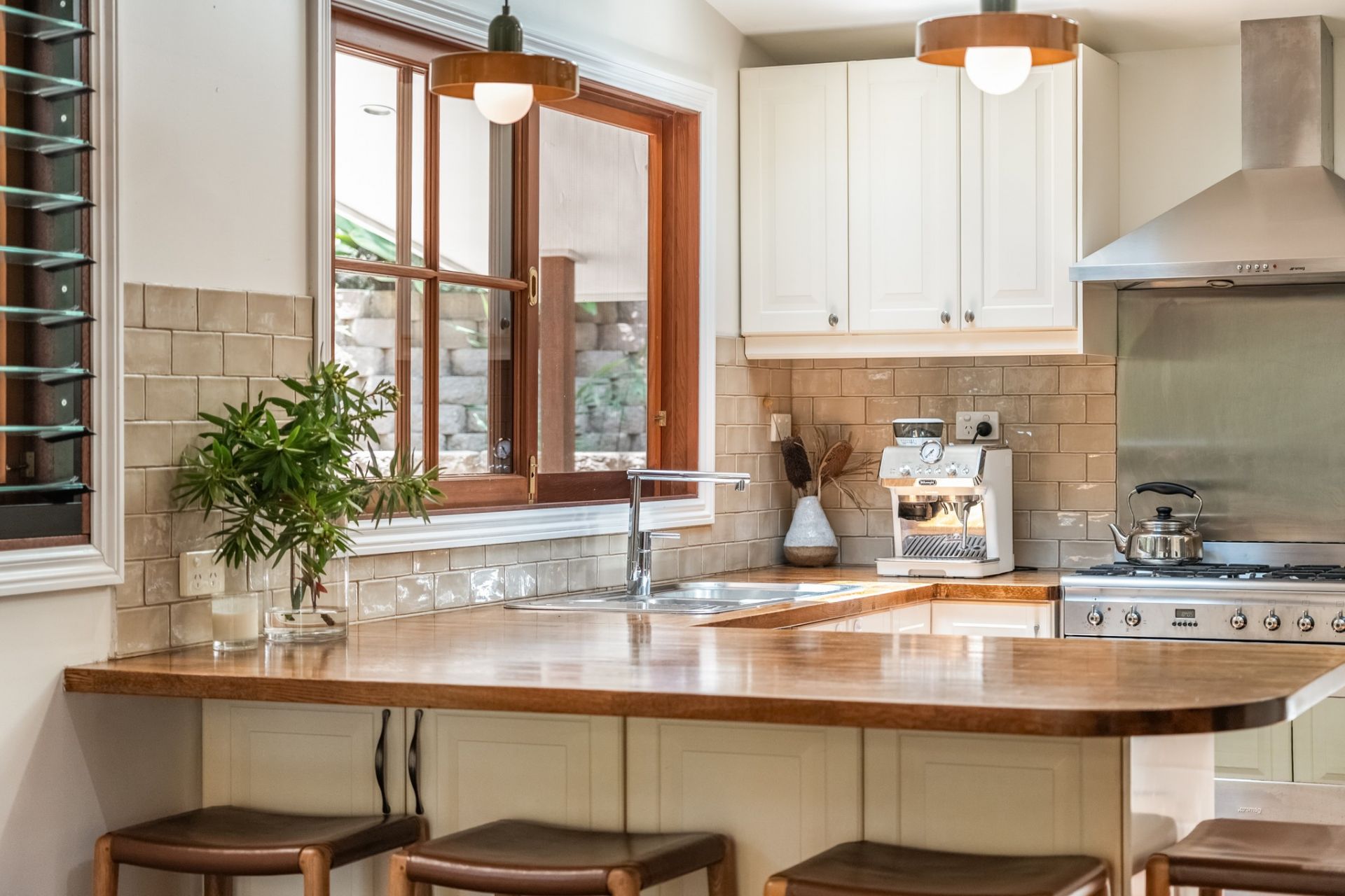 Other features include rich hardwood timber floors, cedar windows and doors and air-conditioning.