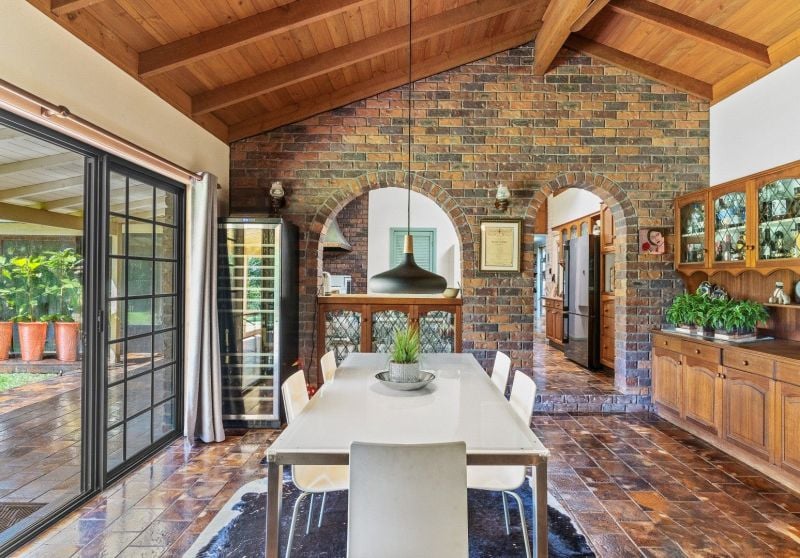 At the heart of it all sits a warm and welcoming single-level home, full of character and soul. Exposed timber beams, soaring ceilings, and wide windows frame the landscape and invite the light in. The floorplan flows with ease, offering multiple living spaces, from the cosy lounge with its woodfire heater to the spacious media and family rooms designed for relaxed gatherings.