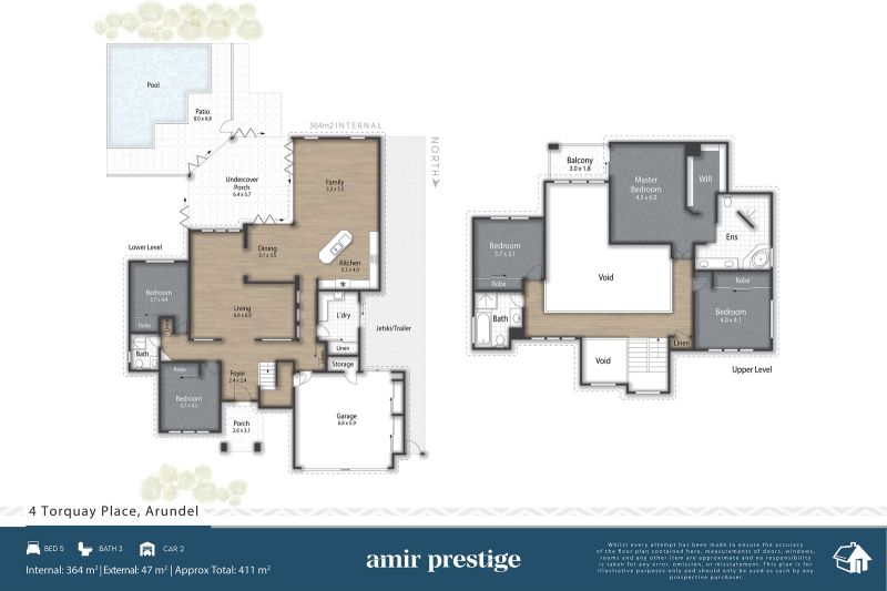 - Five spacious double bedrooms, each equipped with ceiling fans, ducted air conditioning, and built-in robes