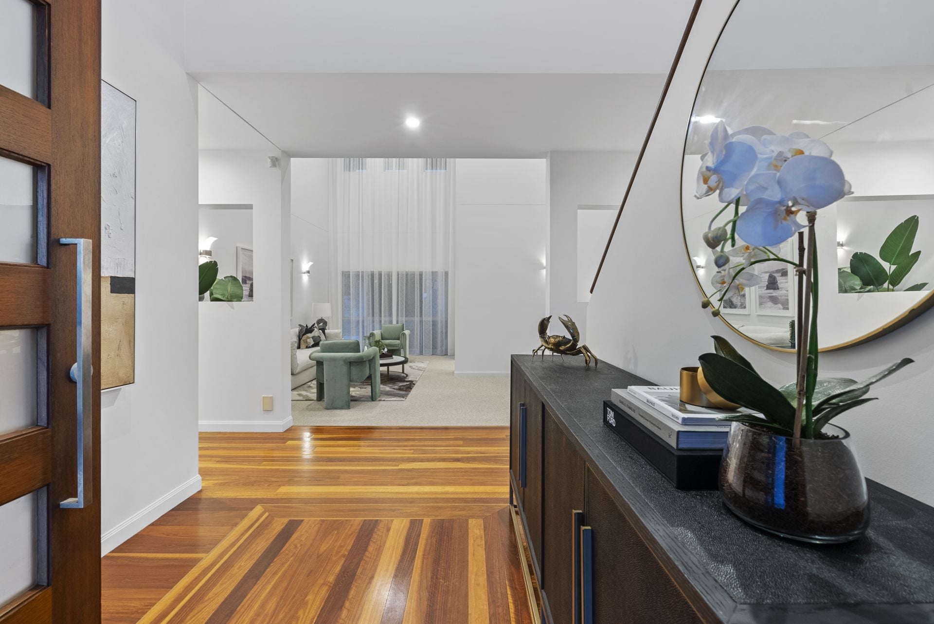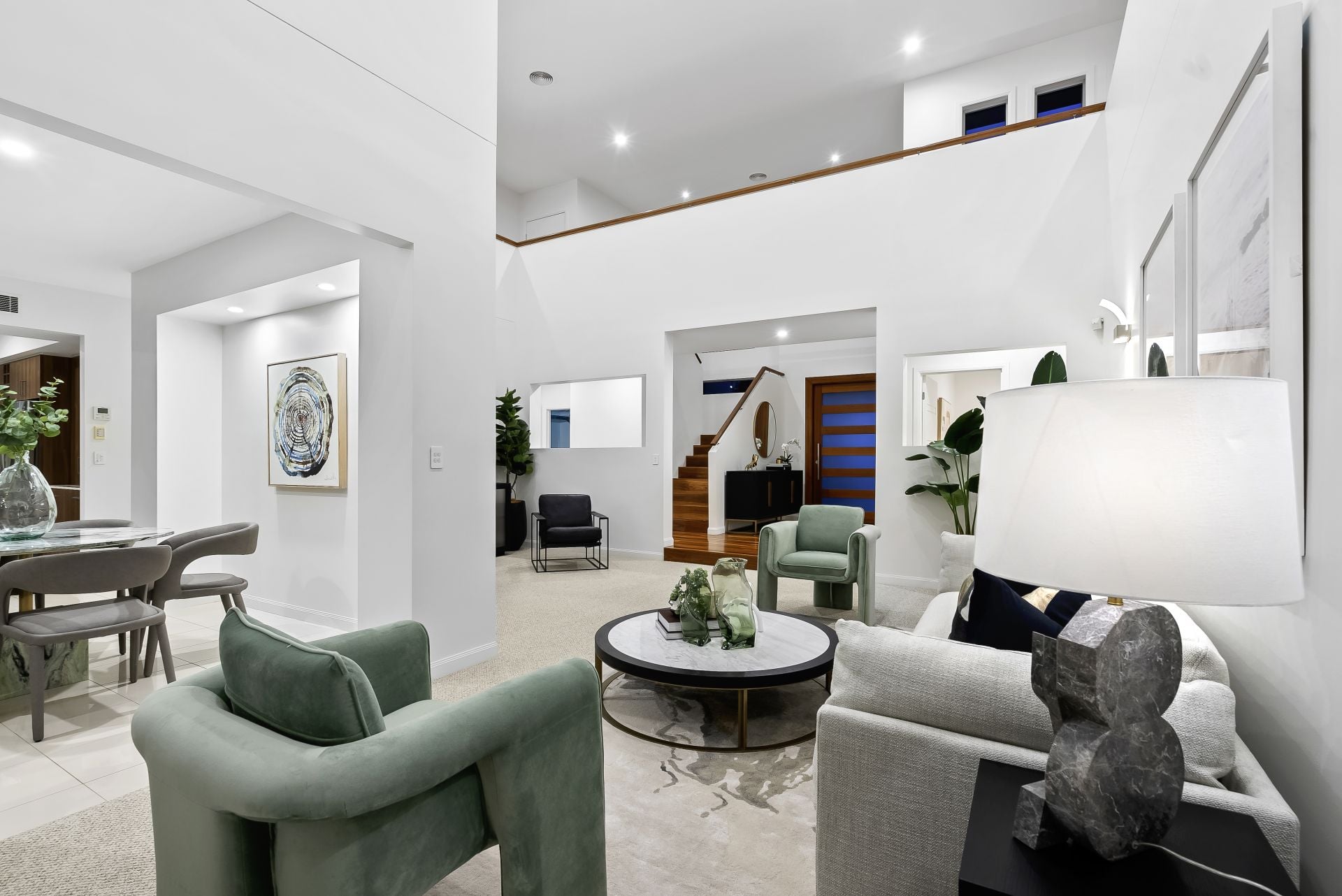 As you enter the grand foyer, you'll be greeted by polished timber floors and soaring double-height ceilings, setting the stage for the premium finishes and thoughtful design found throughout the home. The contemporary open-plan layout seamlessly blends style and functionality, making it perfect for families seeking ample space for both relaxation and entertainment.