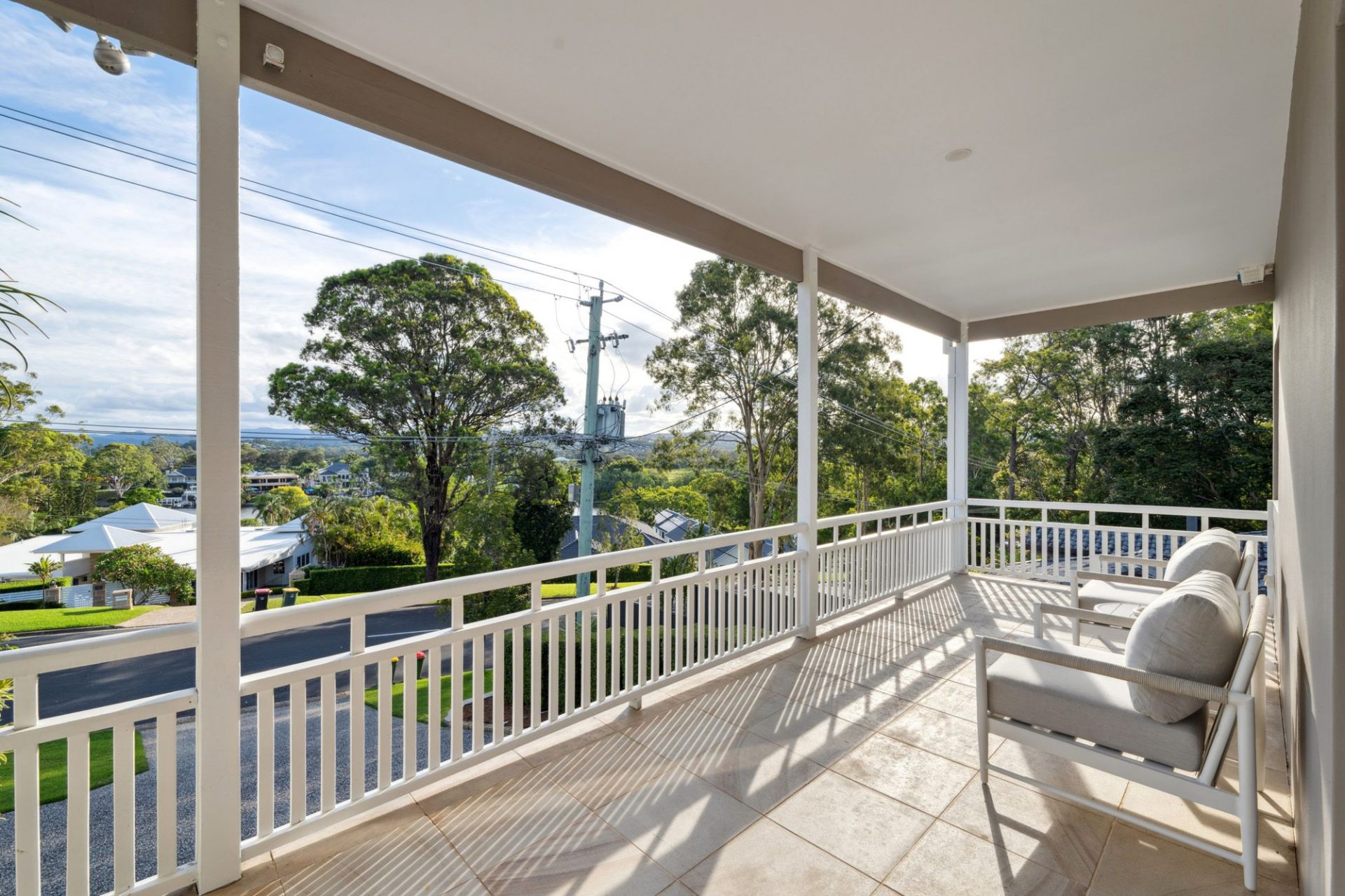 Set on an elevated half-acre parcel capturing cool southerly breezes and glimpses of the tranquil Nerang River, this grand two-level home embodies luxury, privacy, and refined family living.