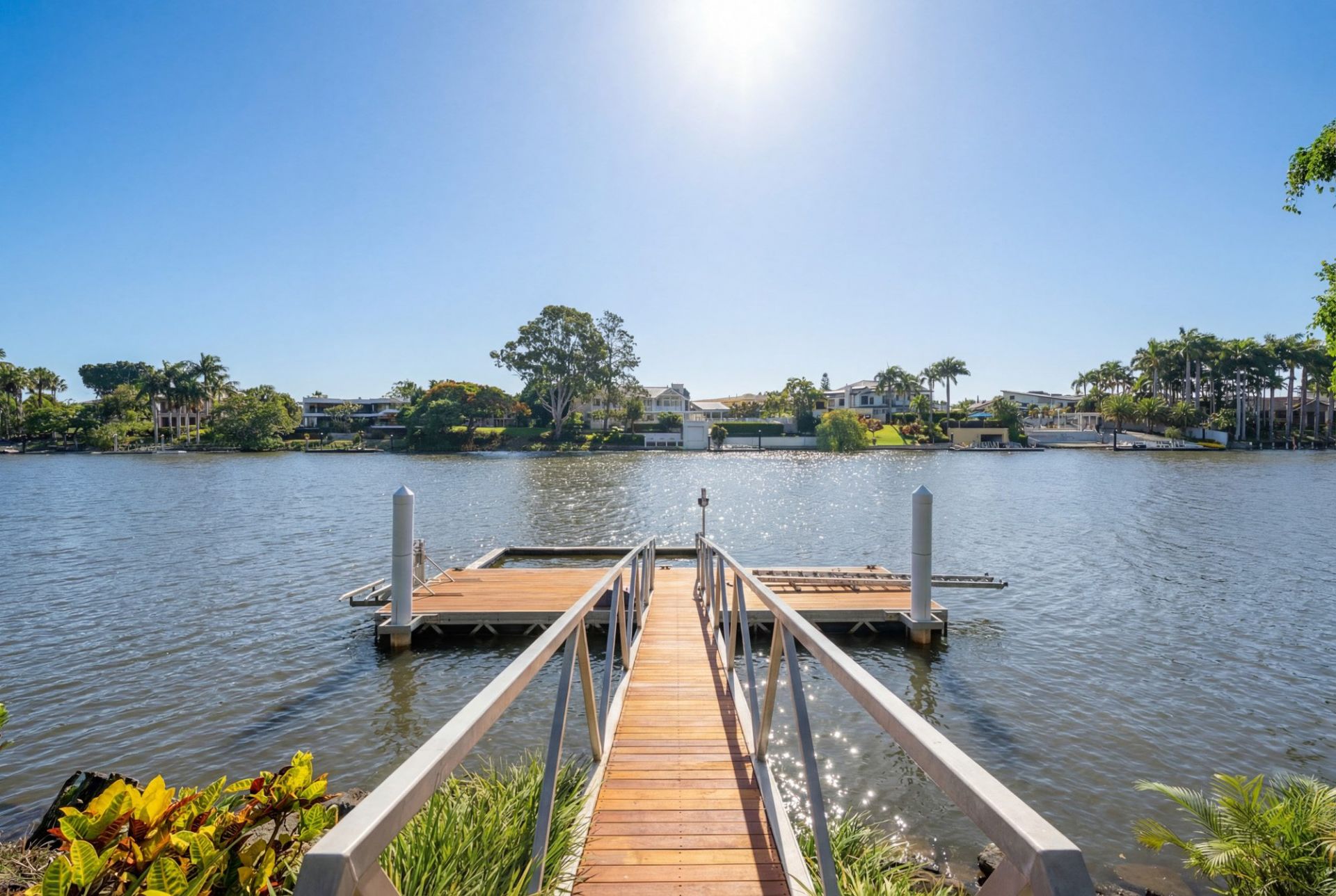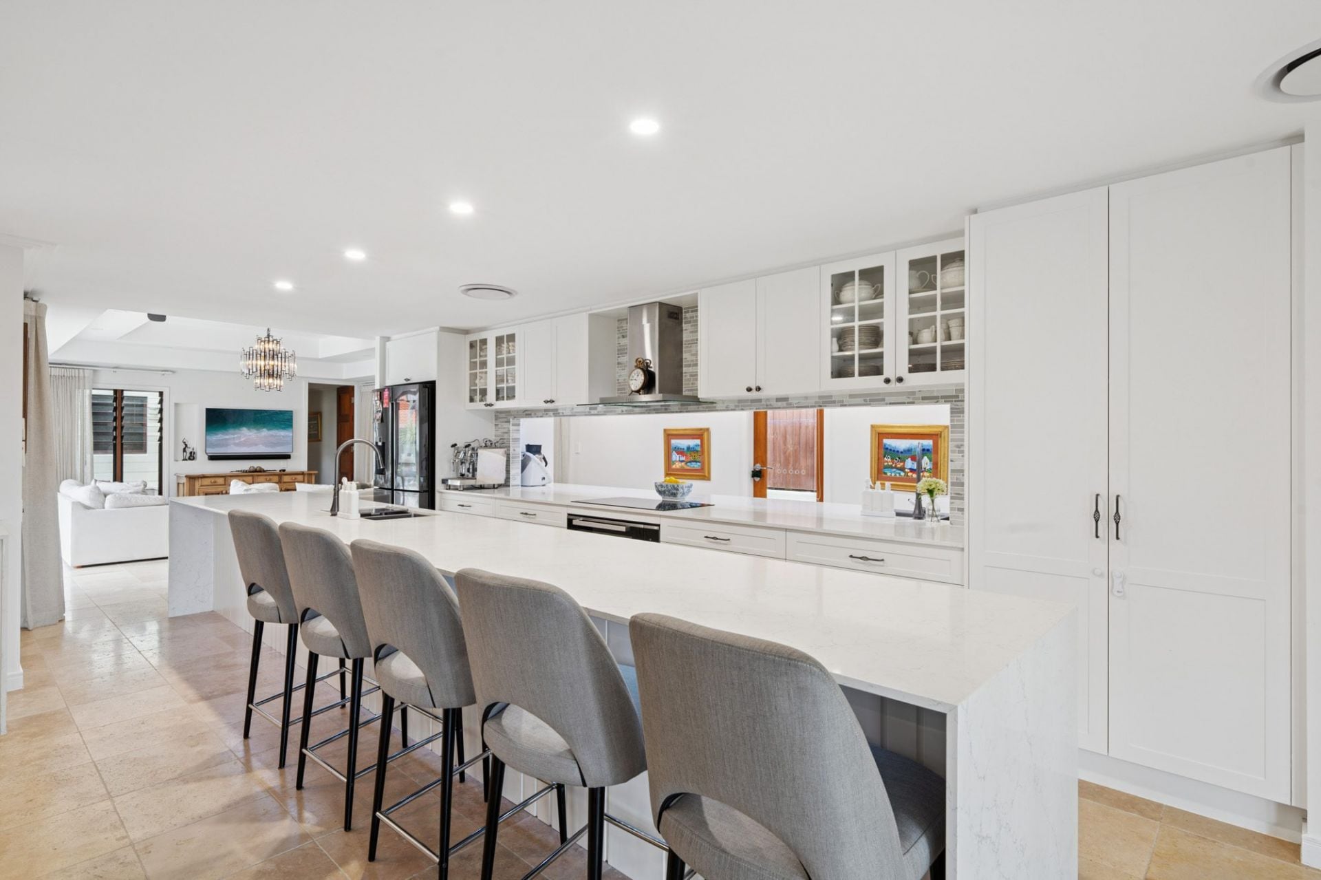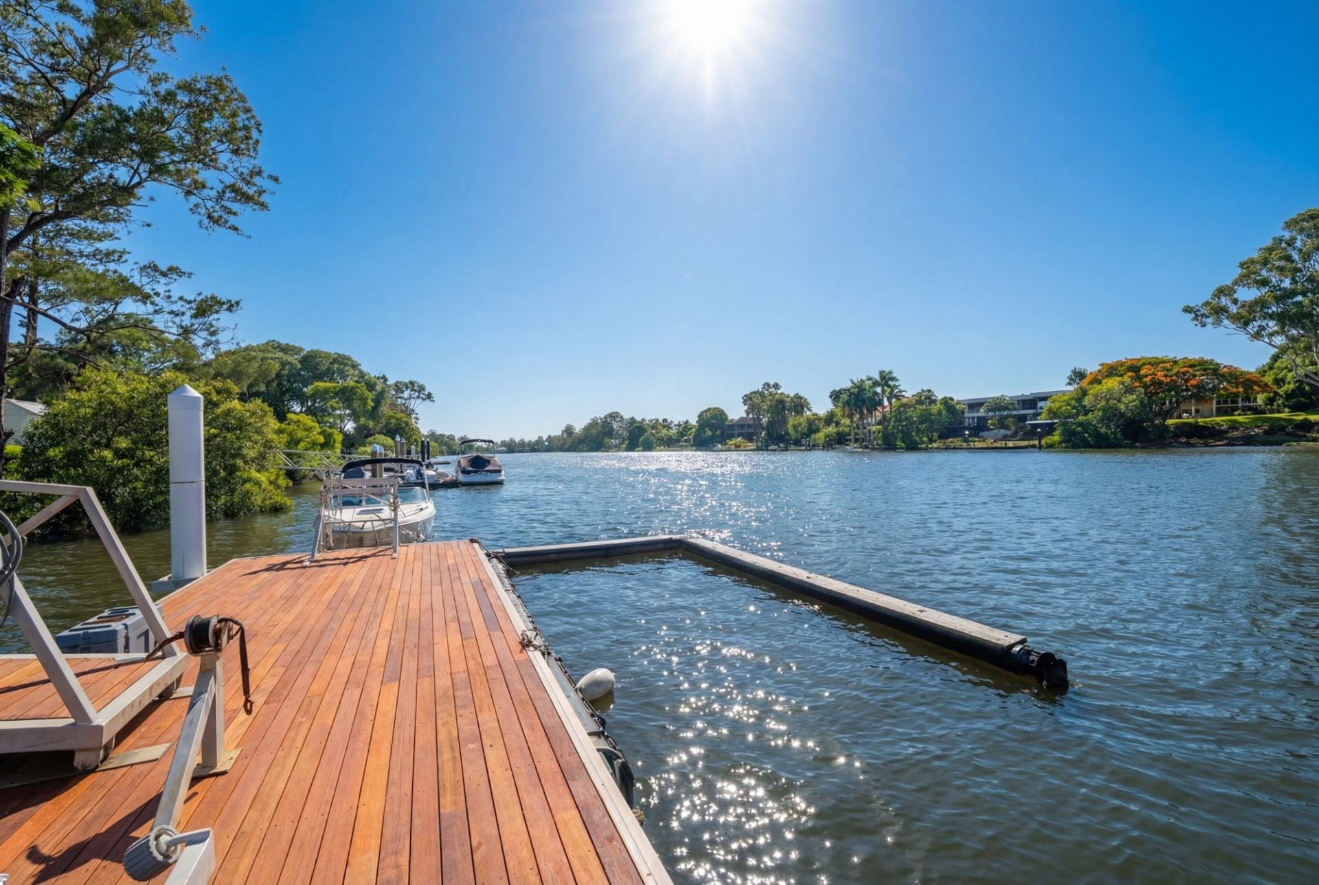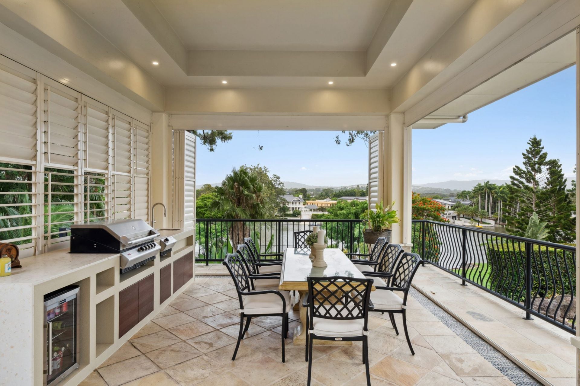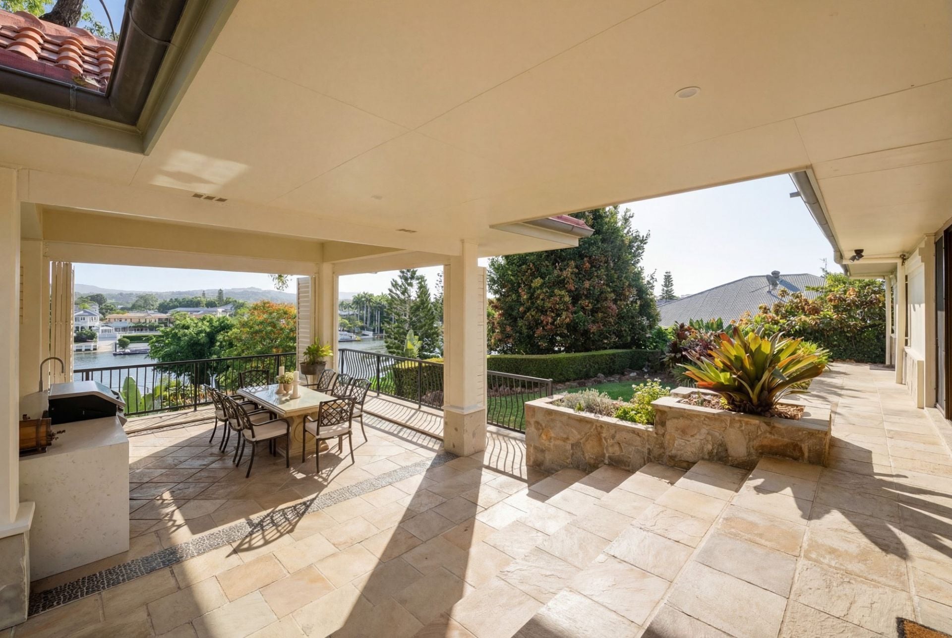 Elevated and commanding, the property captures sweeping river and hinterland views and boasts over an acre and approximately 30-metres of direct main river frontage. The immediate sense is one of calm and seclusion, with wide streets, generous proportions and an inner-city acreage feel that is increasingly difficult to replicate so close to elite schools, shopping precincts and the coastline.