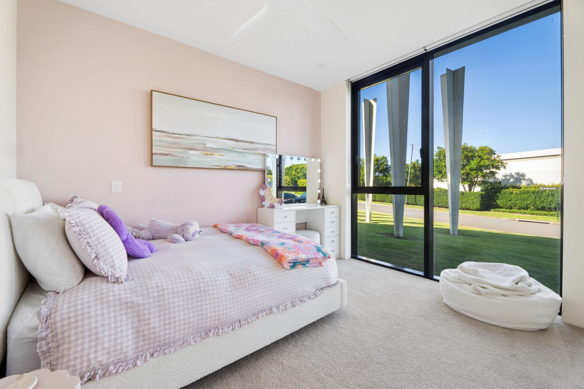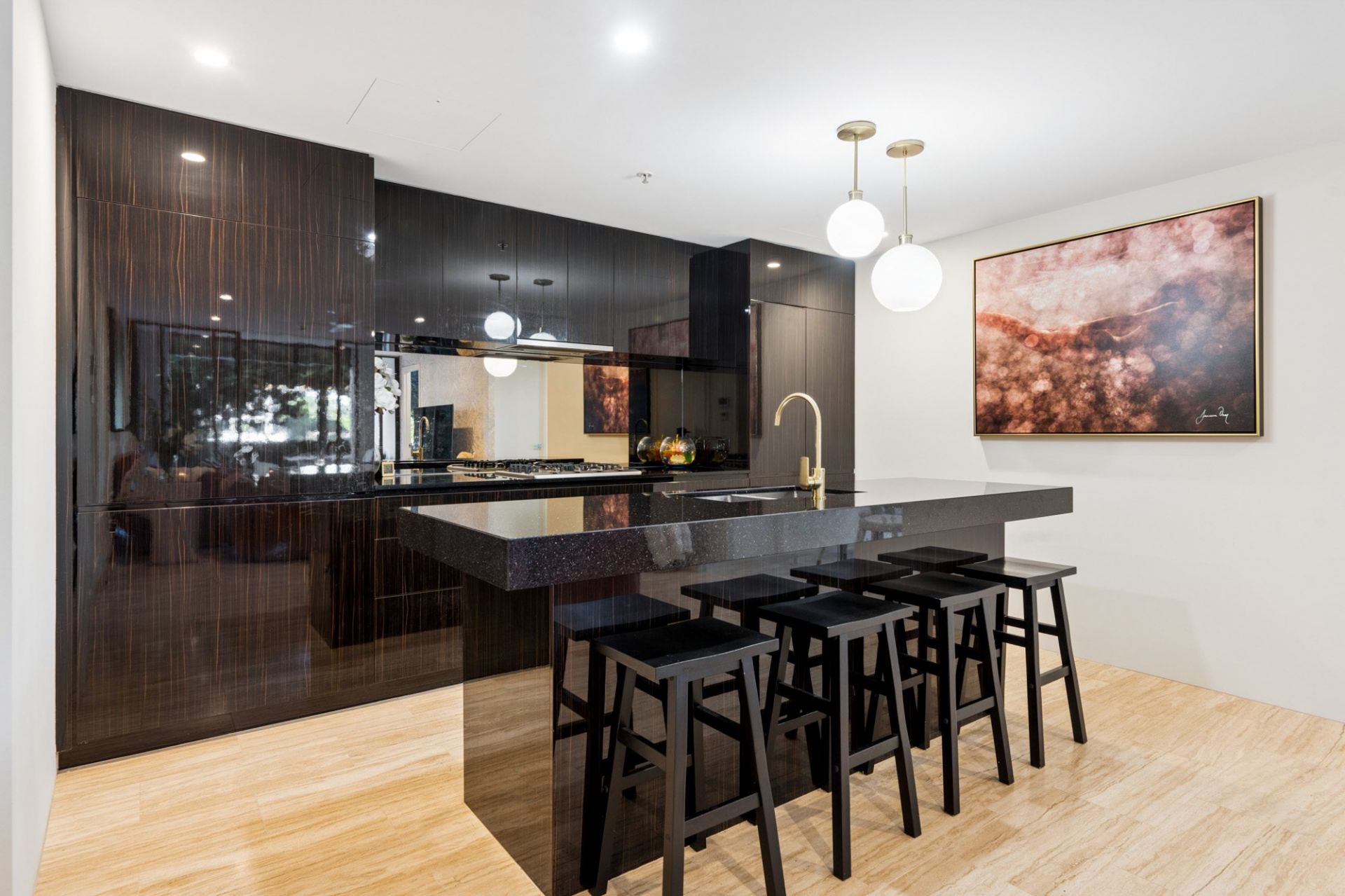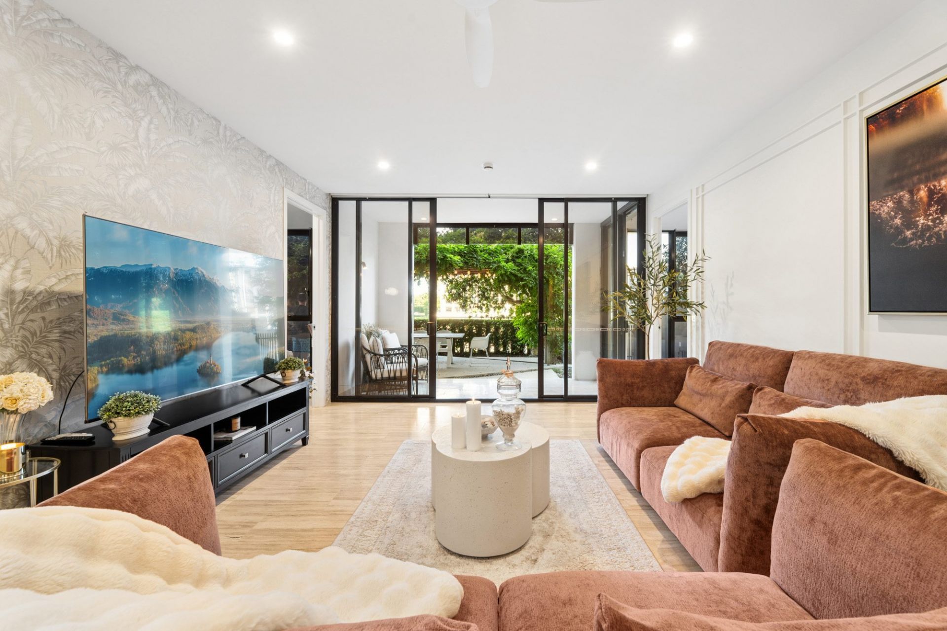 The residence features three generously proportioned bedrooms and a state-of-the-art designer kitchen fitted with premium Miele appliances, stone benchtops, and an impressive three-metre island bench. The expansive master retreat is complemented by a walk-in wardrobe, a luxurious ensuite with bath, and private access to the outdoor patio. High ceilings and fully ducted reverse-cycle air conditioning further enhance the sense of space and comfort throughout the home.
