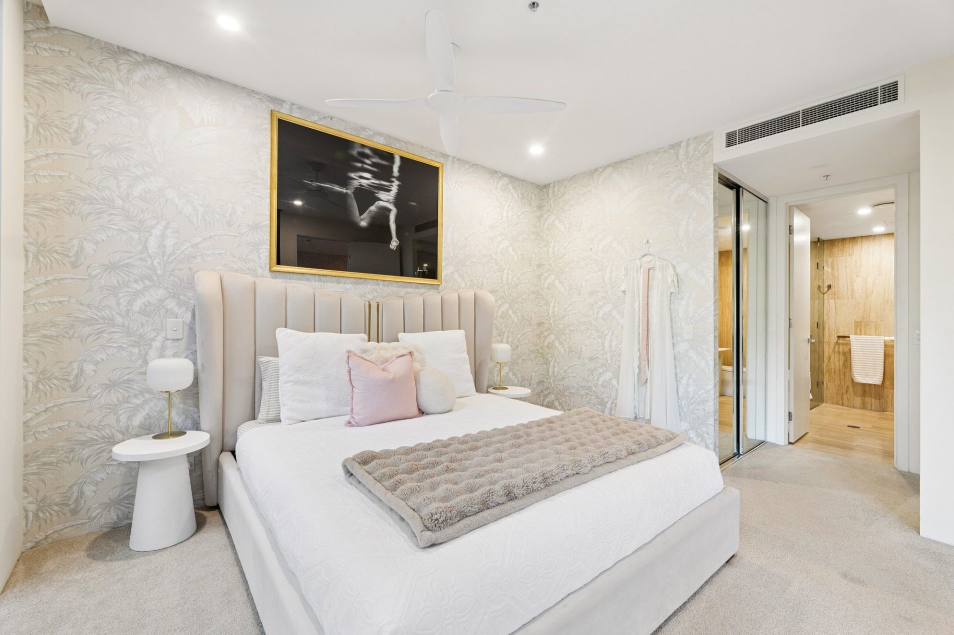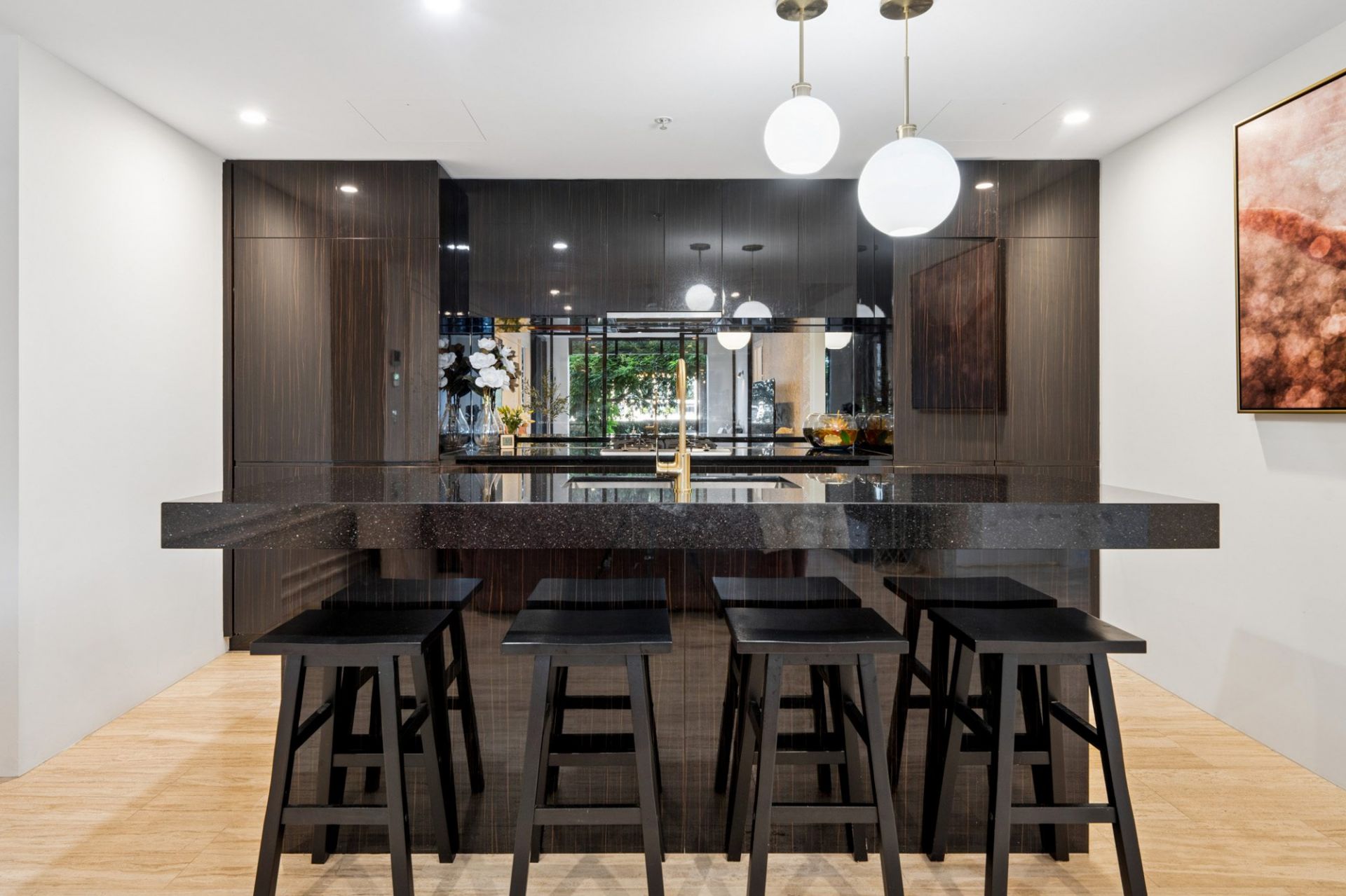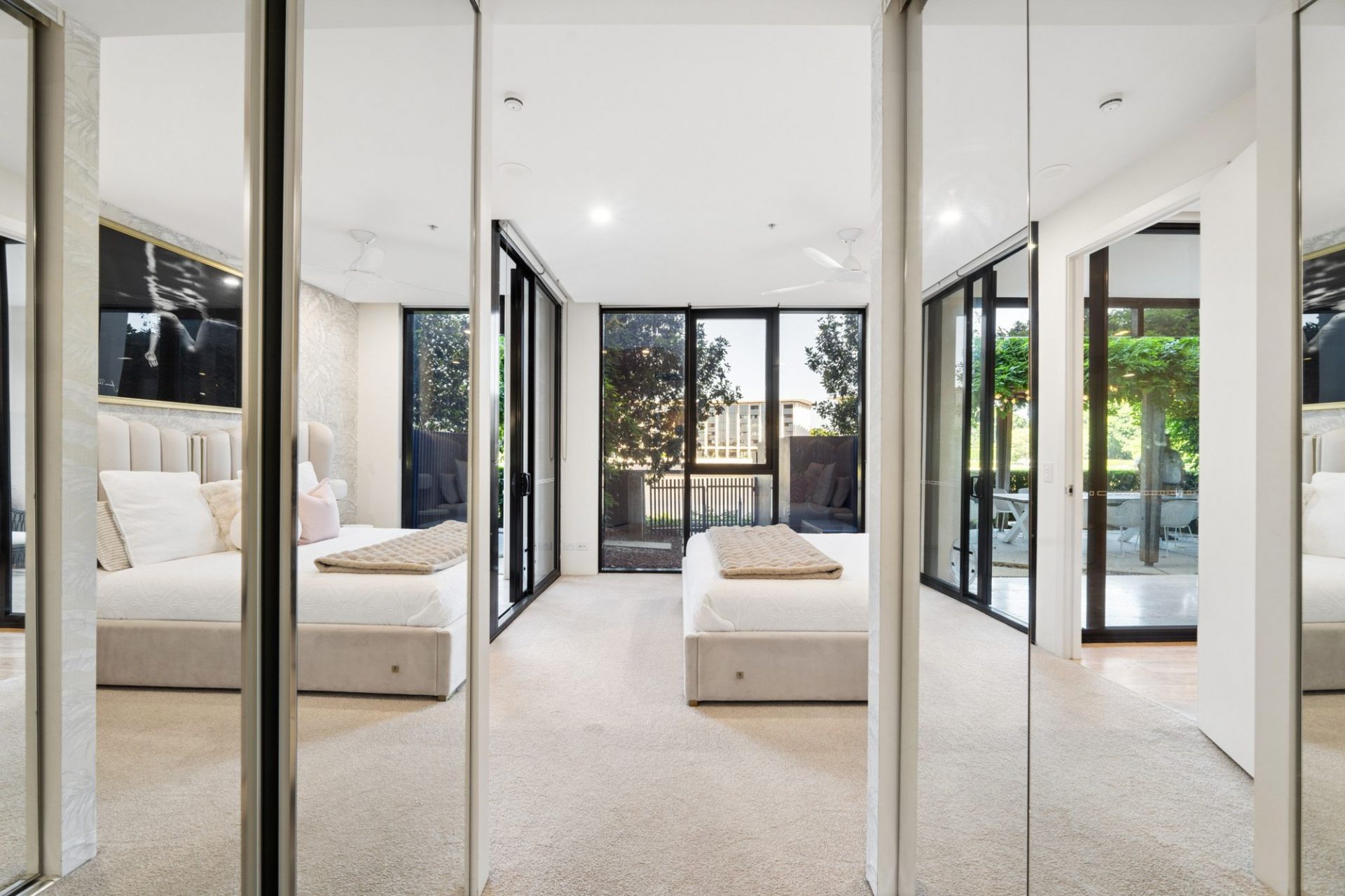 The residence features three generously proportioned bedrooms and a state-of-the-art designer kitchen fitted with premium Miele appliances, stone benchtops, and an impressive three-metre island bench. The expansive master retreat is complemented by a walk-in wardrobe, a luxurious ensuite with bath, and private access to the outdoor patio. High ceilings and fully ducted reverse-cycle air conditioning further enhance the sense of space and comfort throughout the home.