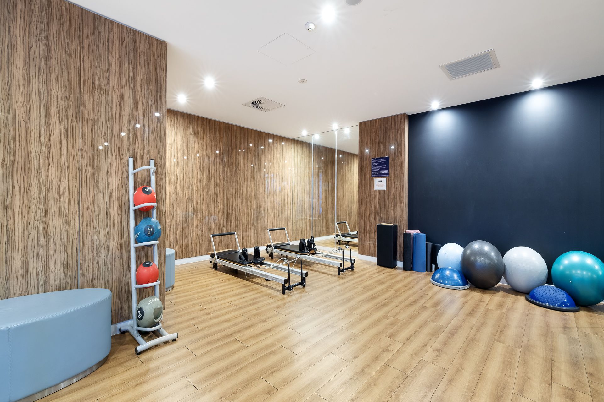 * Fully equipped gym, sauna, and yoga/Pilates studio