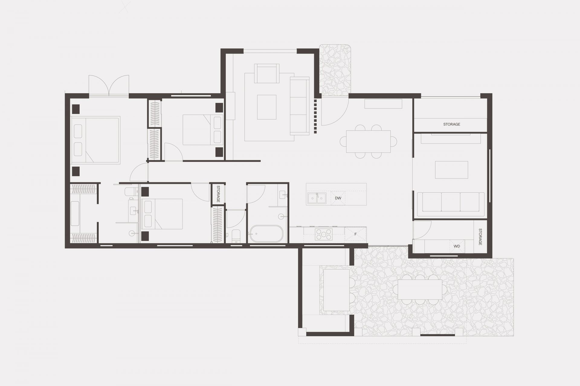 - Master suite with walk in robe and ensuite, opening to the outdoors