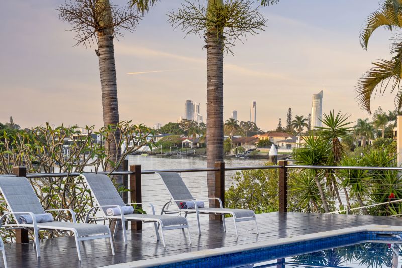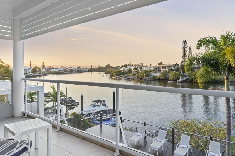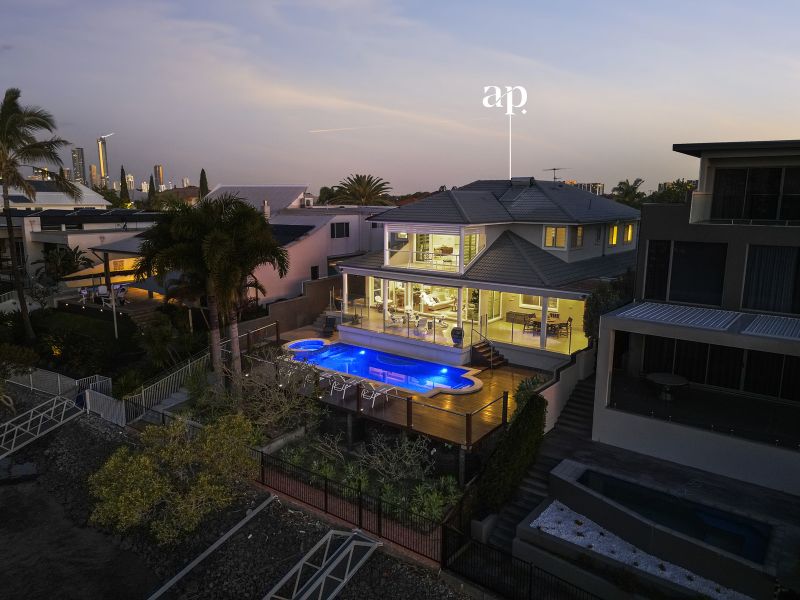 Set on an 851-square-metre block, this residence provides ample parking for over six vehicles behind secure gates, including a double lock-up garage, a carport, and additional space for a motor home or boat. This prime Broadbeach Waters location places you mere minutes from Pacific Fair Shopping, elite private schools, vibrant cafés, and pristine beaches.
