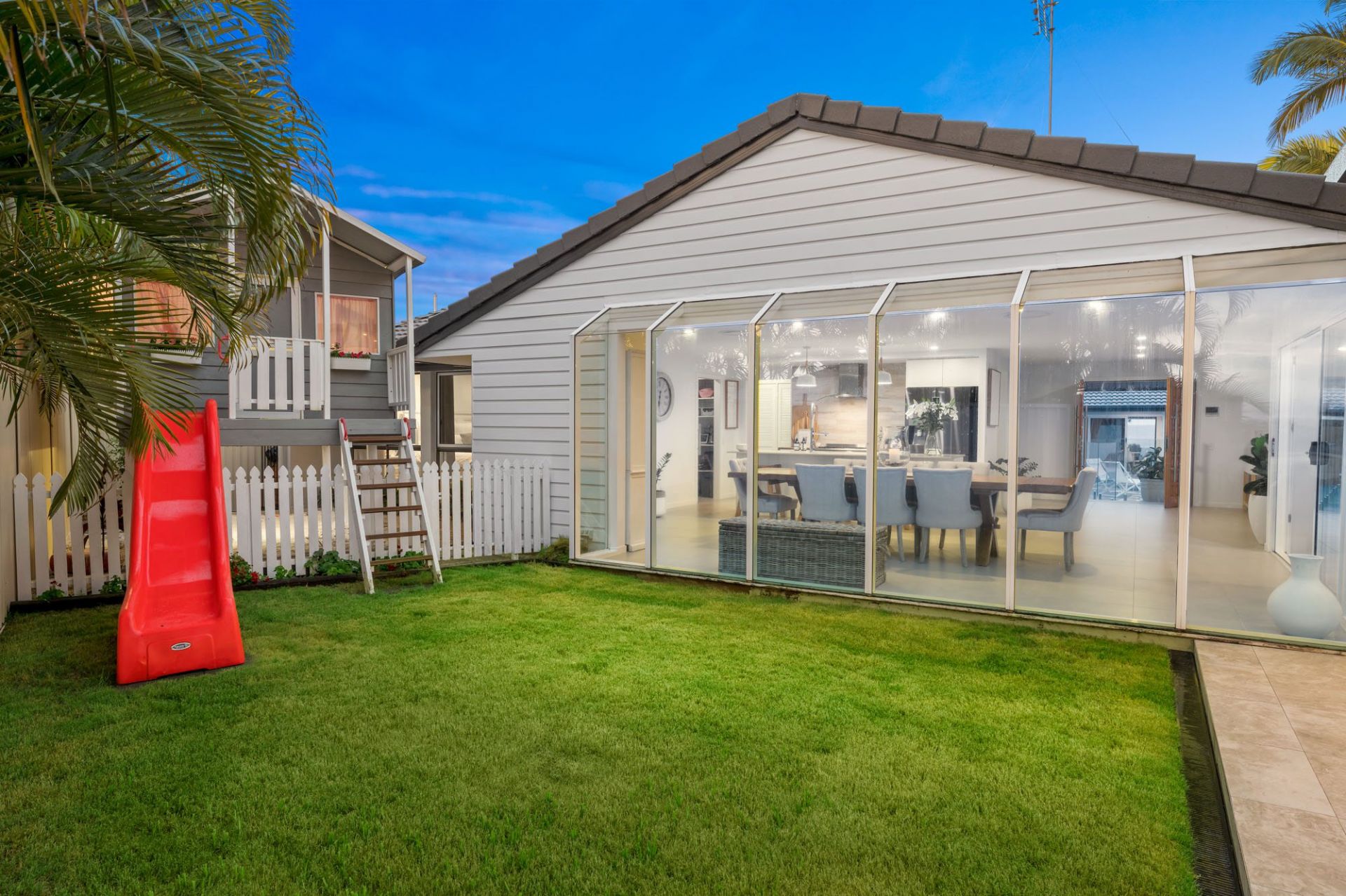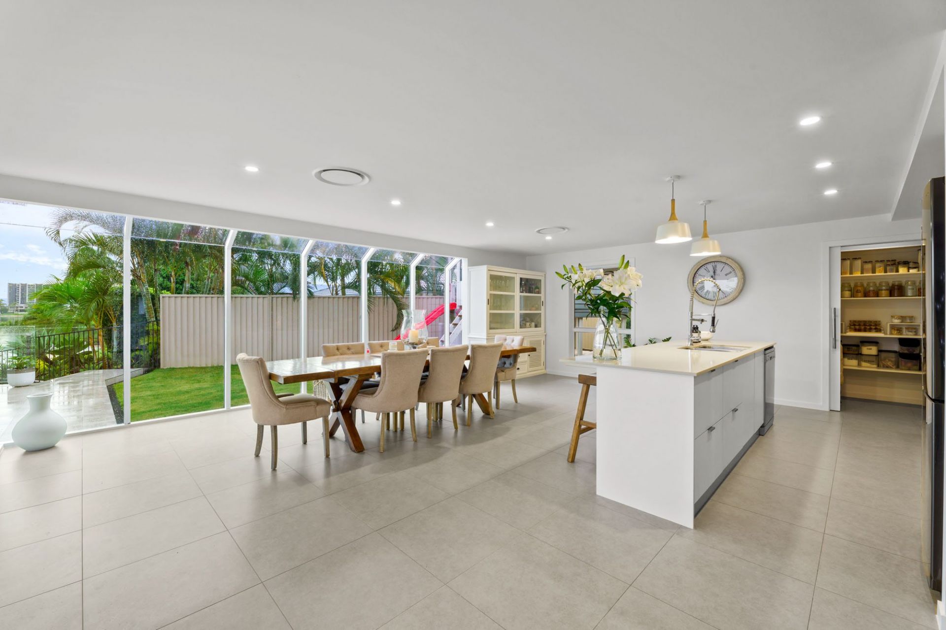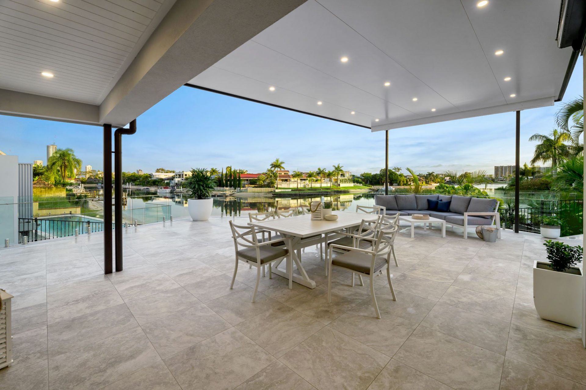 Entertain in style year-round with a selection of indoor and outdoor living spaces. Whether you're enjoying family gatherings on the waterfront terrace, lounging poolside with friends, or hosting sunset drinks under the covered alfresco pavilion, every detail has been thoughtfully designed for relaxation and enjoyment. Manicured gardens and a sparkling in-ground pool create a resort-style ambiance, while the fully fenced block ensures peace of mind and privacy.