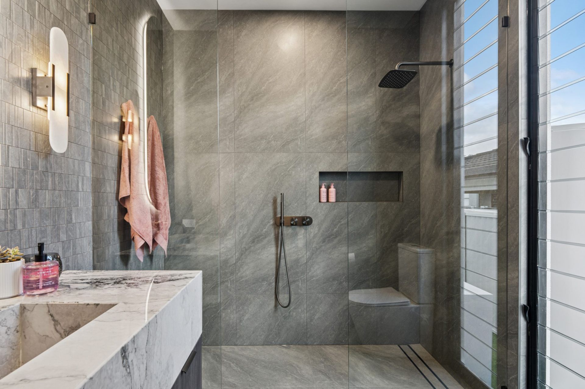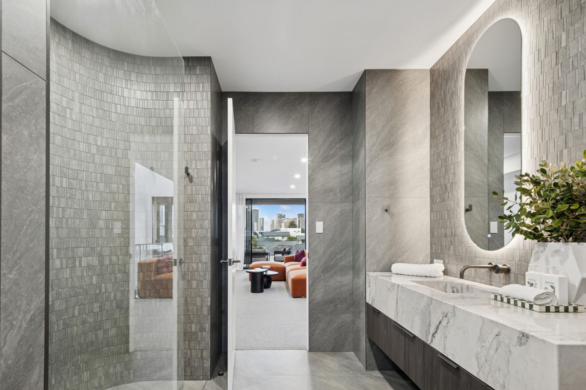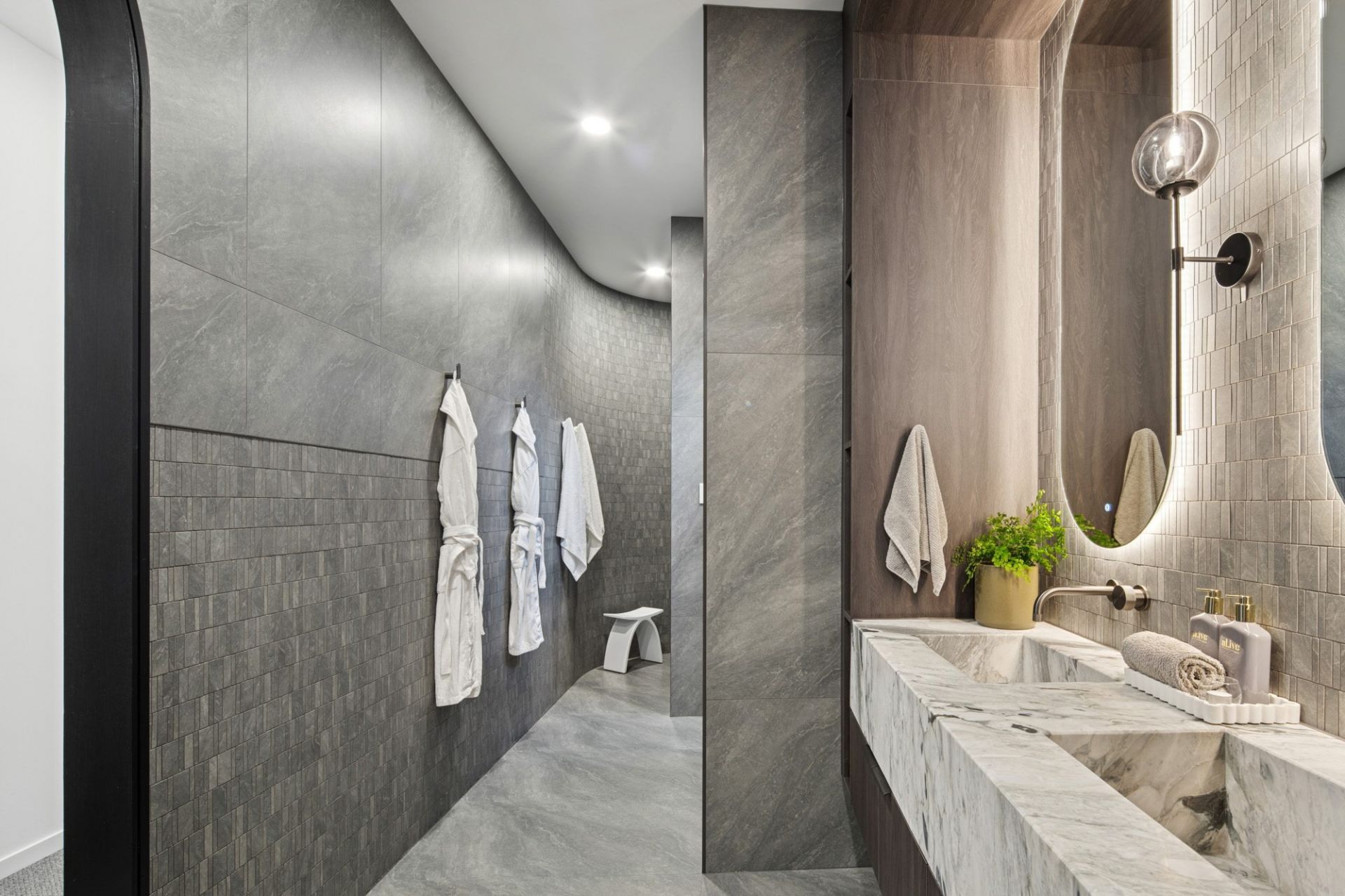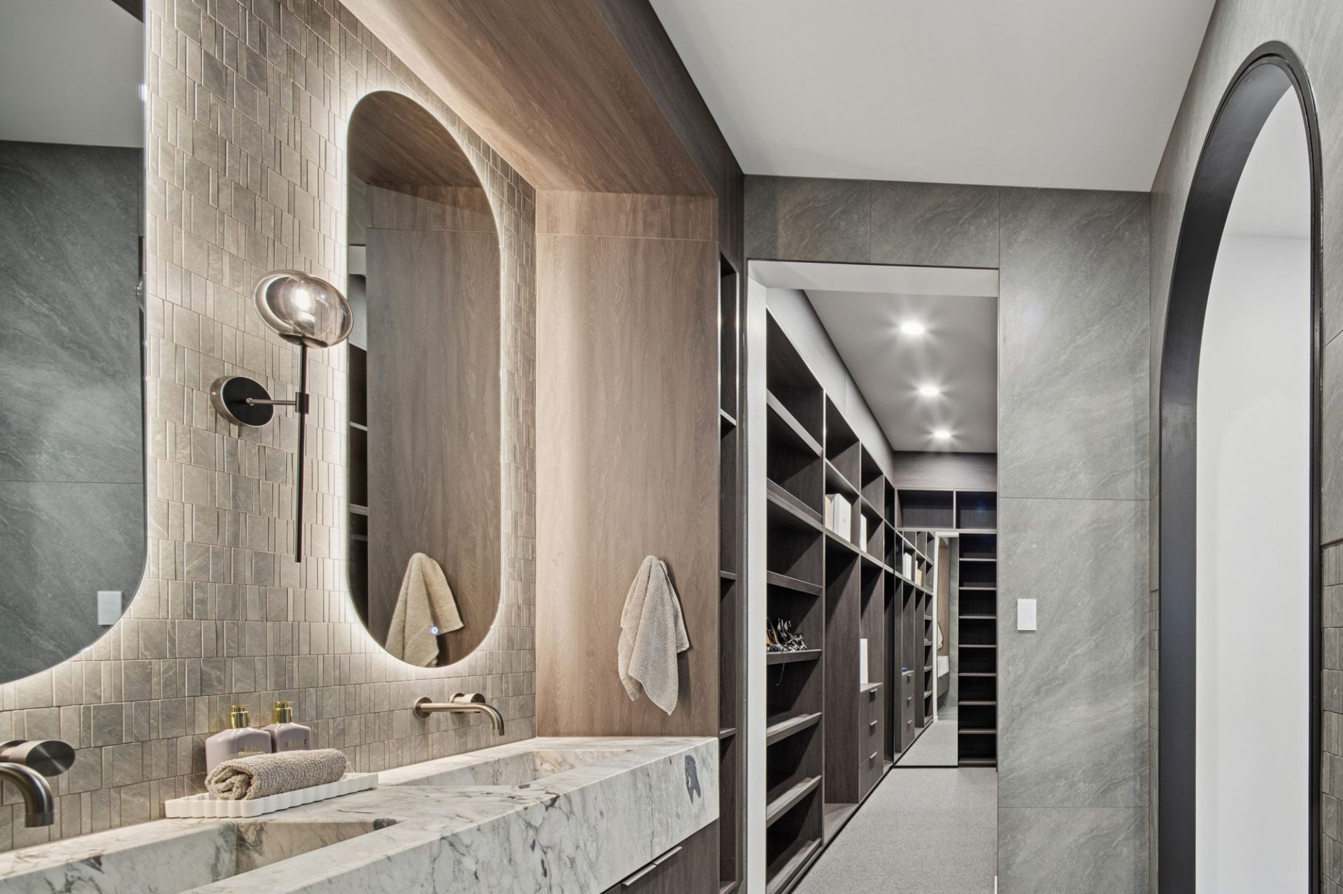 The ground-floor guest suite is a haven of tranquility, a bespoke walk-in robe, and a marble-clad ensuite of unmatched elegance. Upstairs, four additional bedrooms continue the theme of refined luxury, with all upper bathrooms adorned in imported Arabescato marble, each detail executed with precision and artistry.