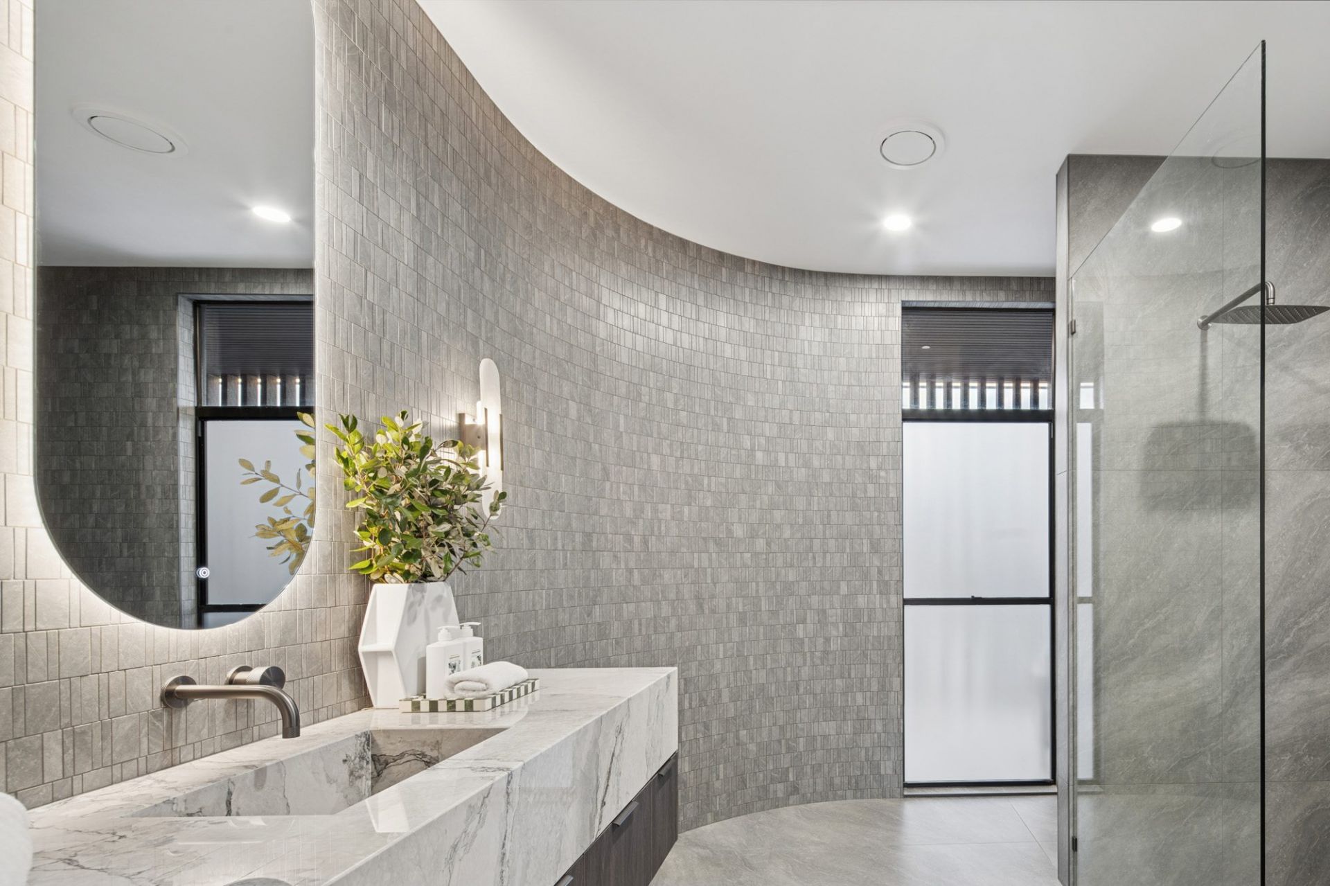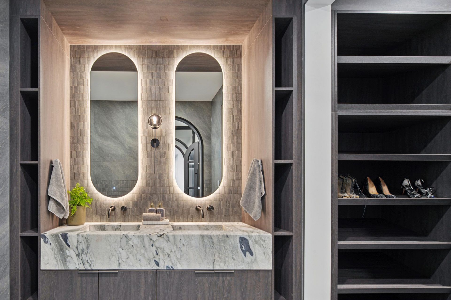 The ground-floor guest suite is a haven of tranquility, a bespoke walk-in robe, and a marble-clad ensuite of unmatched elegance. Upstairs, four additional bedrooms continue the theme of refined luxury, with all upper bathrooms adorned in imported Arabescato marble, each detail executed with precision and artistry.