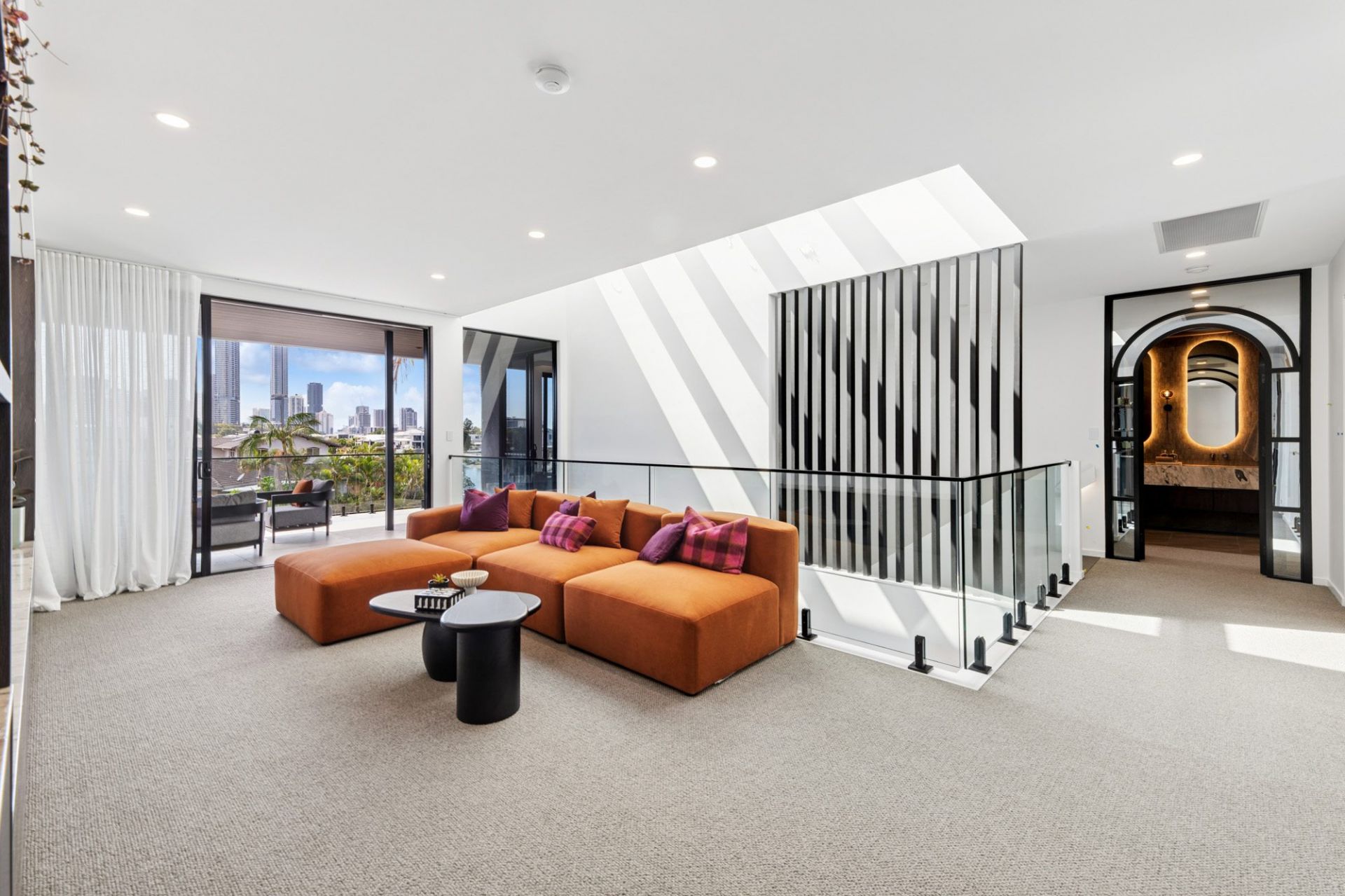 From the street, bold architectural lines and sculptural textures immediately captivate the eye. Step inside and be transported into a world of light and space, where vast panes of glass frame uninterrupted skyline & water views that stretch from Broadbeach to Surfers Paradise. Every level offers a front-row seat to this mesmerizing panorama, by day, glistening waterways and blue horizons; by night, a glittering skyline that becomes your own private theatre of light.
