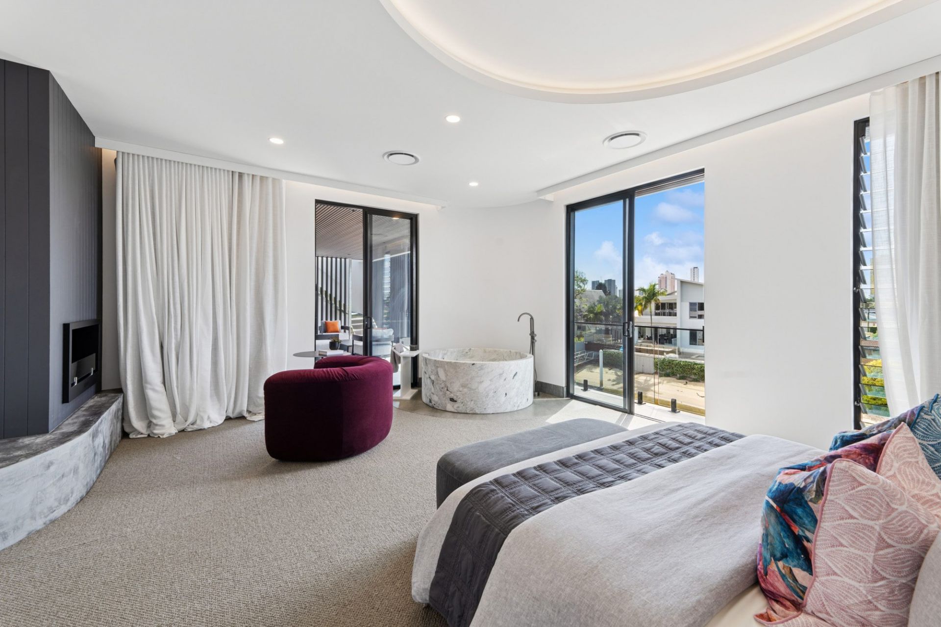 - Palatial master bedroom wing featuring a boutique dressing room, an exquisite arabascarto marble clad ensuite and private wrap around balcony access