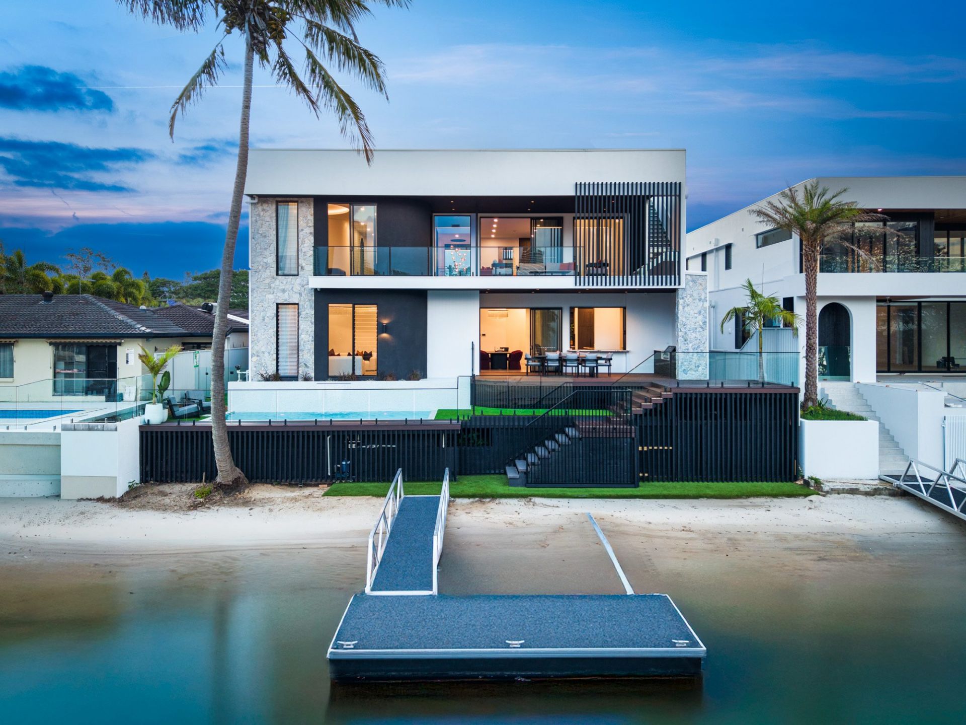Outdoors, the property unfolds into an oasis of fully landscaped, manicured grounds, designed for low-maintenance elegance. The wide-water aspect, private sandy beach, and pontoon create the ultimate playground for boating, paddleboarding, and waterfront relaxation. Here, luxury and lifestyle are seamlessly intertwined - every view, every moment, designed to be savoured.