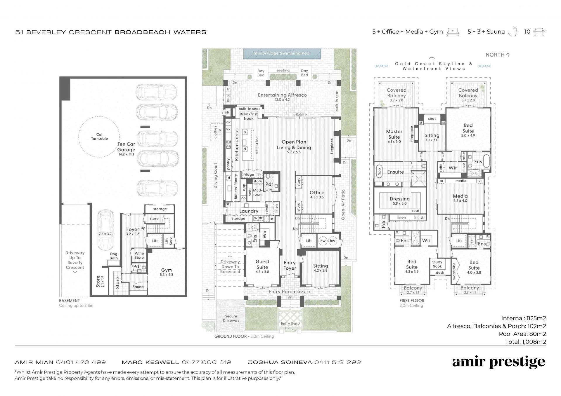 • Full concrete construction with soaring ceilings (3m on first and second floors, up to 2.8m in basement)