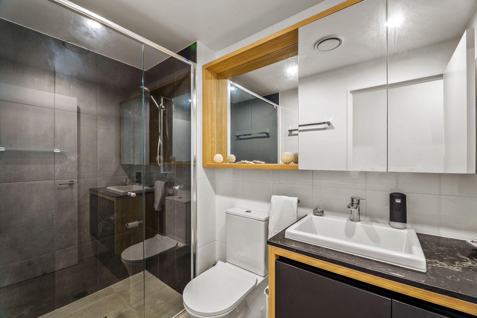 With only 4 apartments per floor, this beautiful property offers a luxe master bedroom with a walk in robe and full ensuite, alongside and generous second bedroom with Built in wardrobes that uses a separate bathroom with floor to ceiling tiling. Occupied from January as first owner occupier, it is equipped with European appliances and fixtures by Frankie and Parisi, alongside an upgrade of plantation window shutters throughout which offer ultimate privacy and natural light control within the apartment.