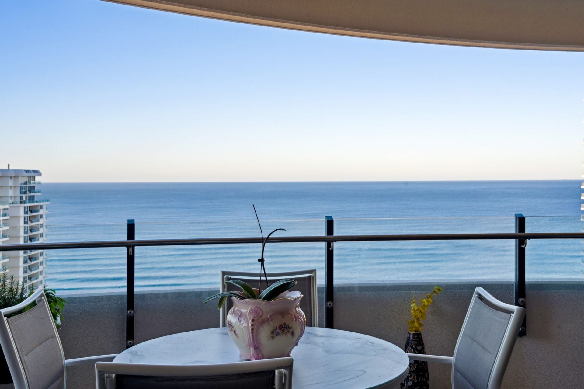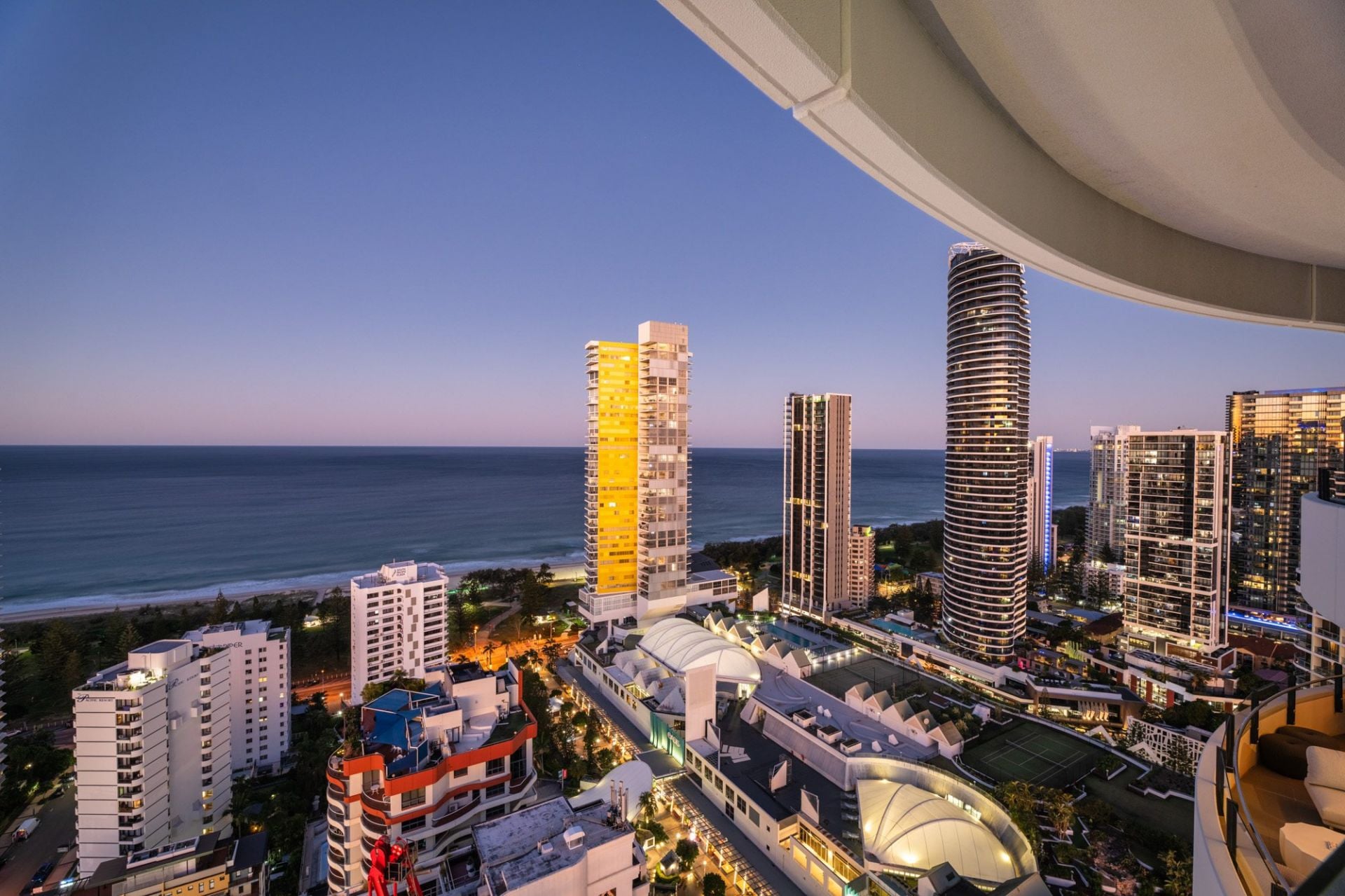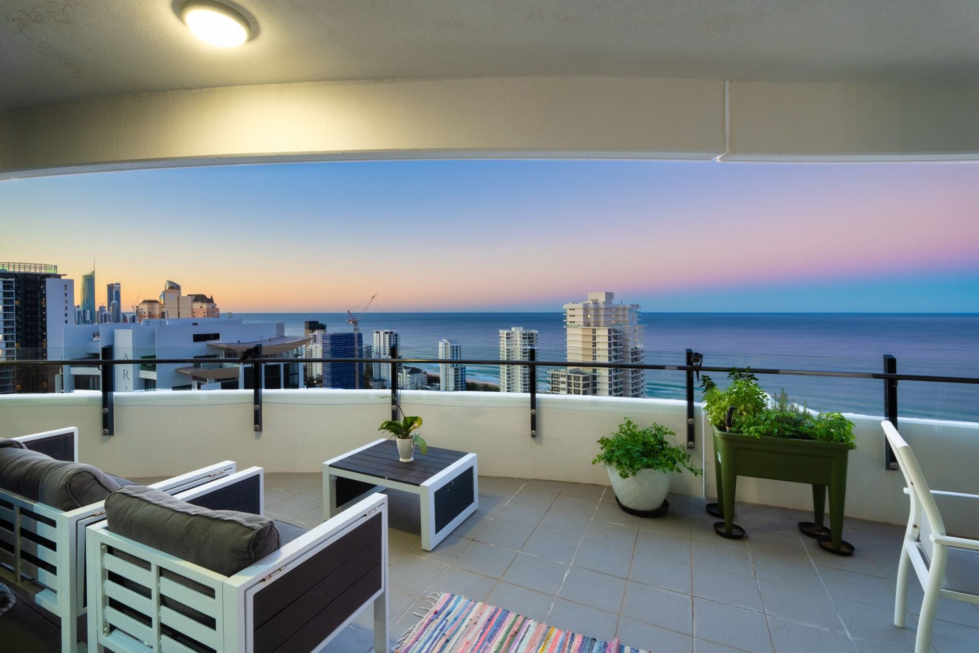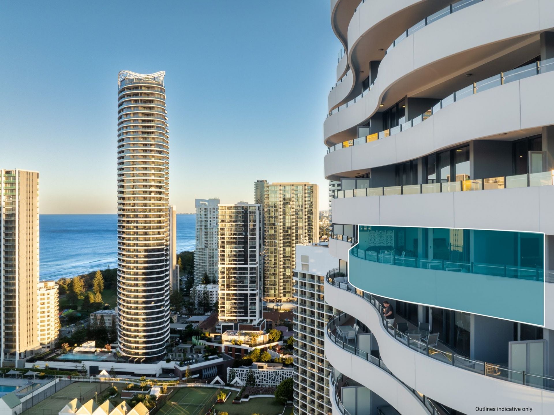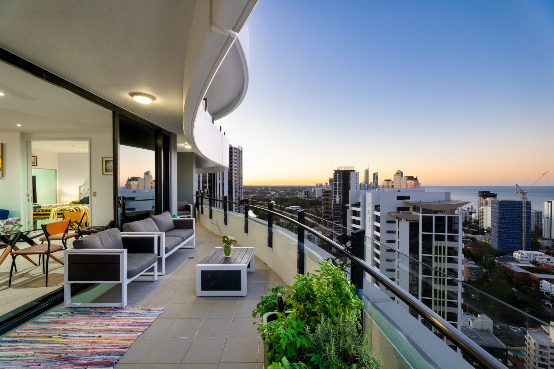 Whether you're enjoying your morning coffee as the sun rises over the ocean, or toasting the day with a glass of wine as the city lights dance below, the sweeping wraparound balcony provides the ultimate vantage point to appreciate the Gold Coast in all its beauty. These are views that transform throughout the day and night, offering an ever-changing backdrop of light, colour, and atmosphere - a constant reminder that you've arrived at something truly special.