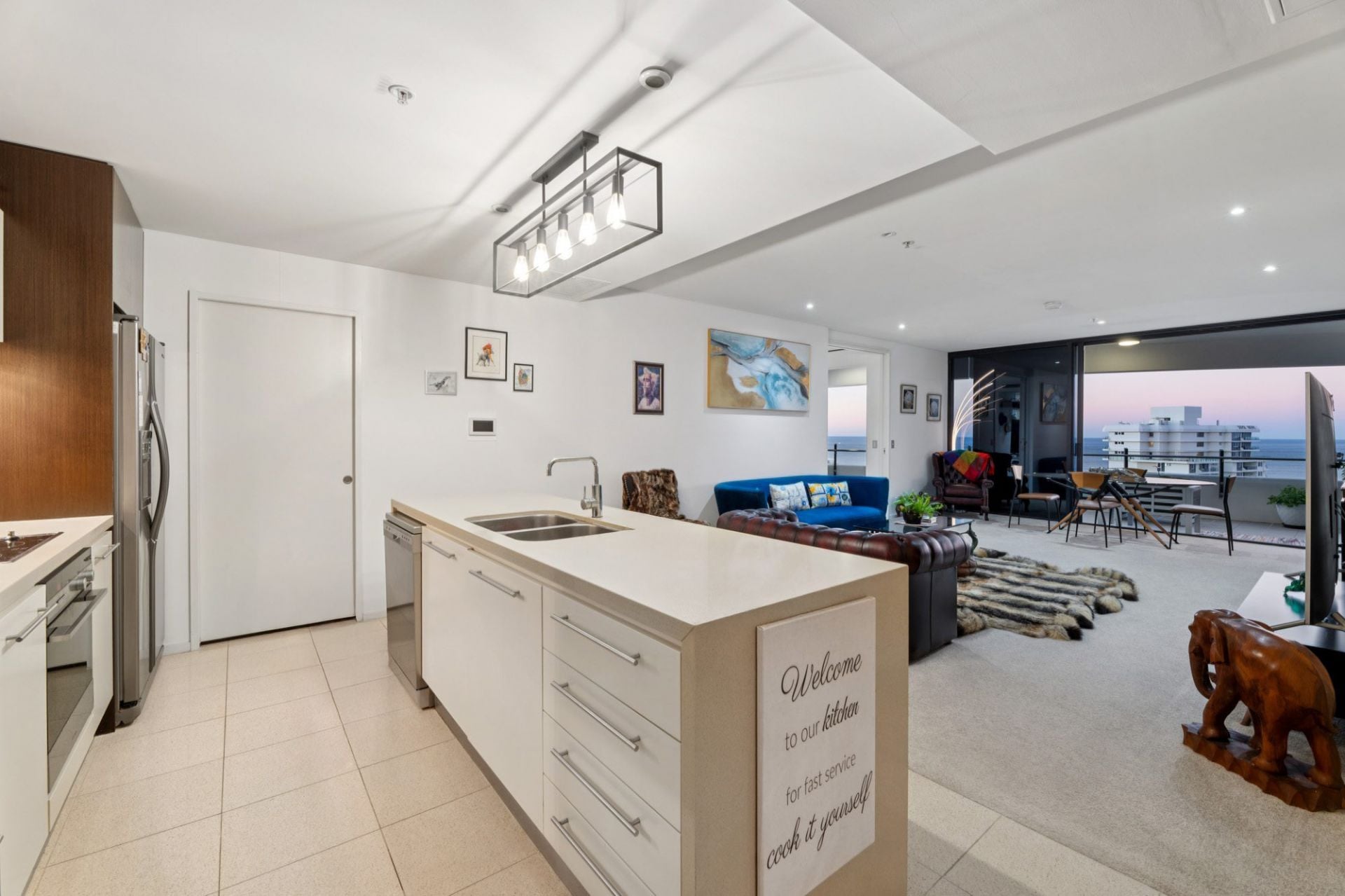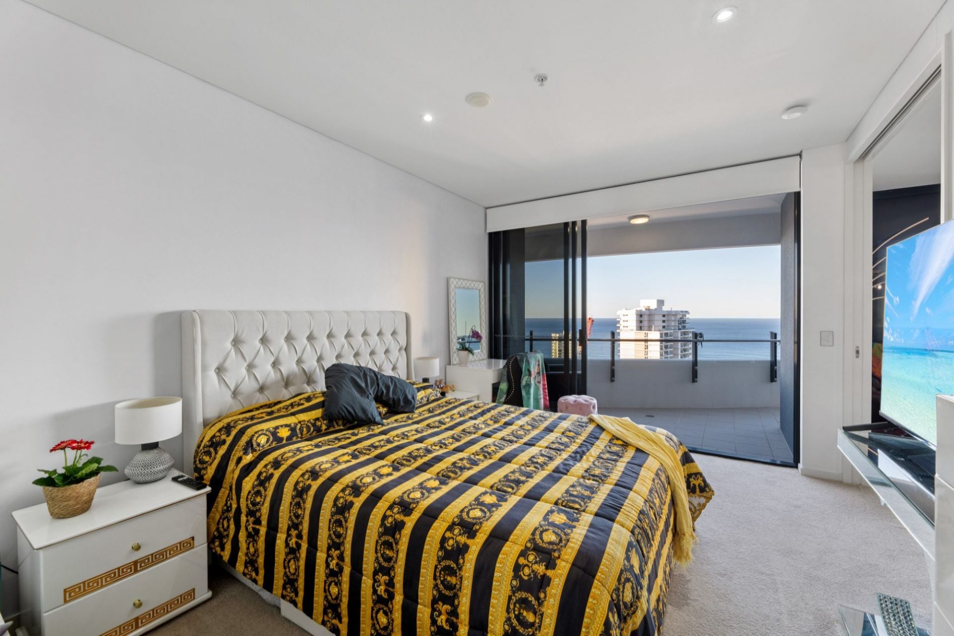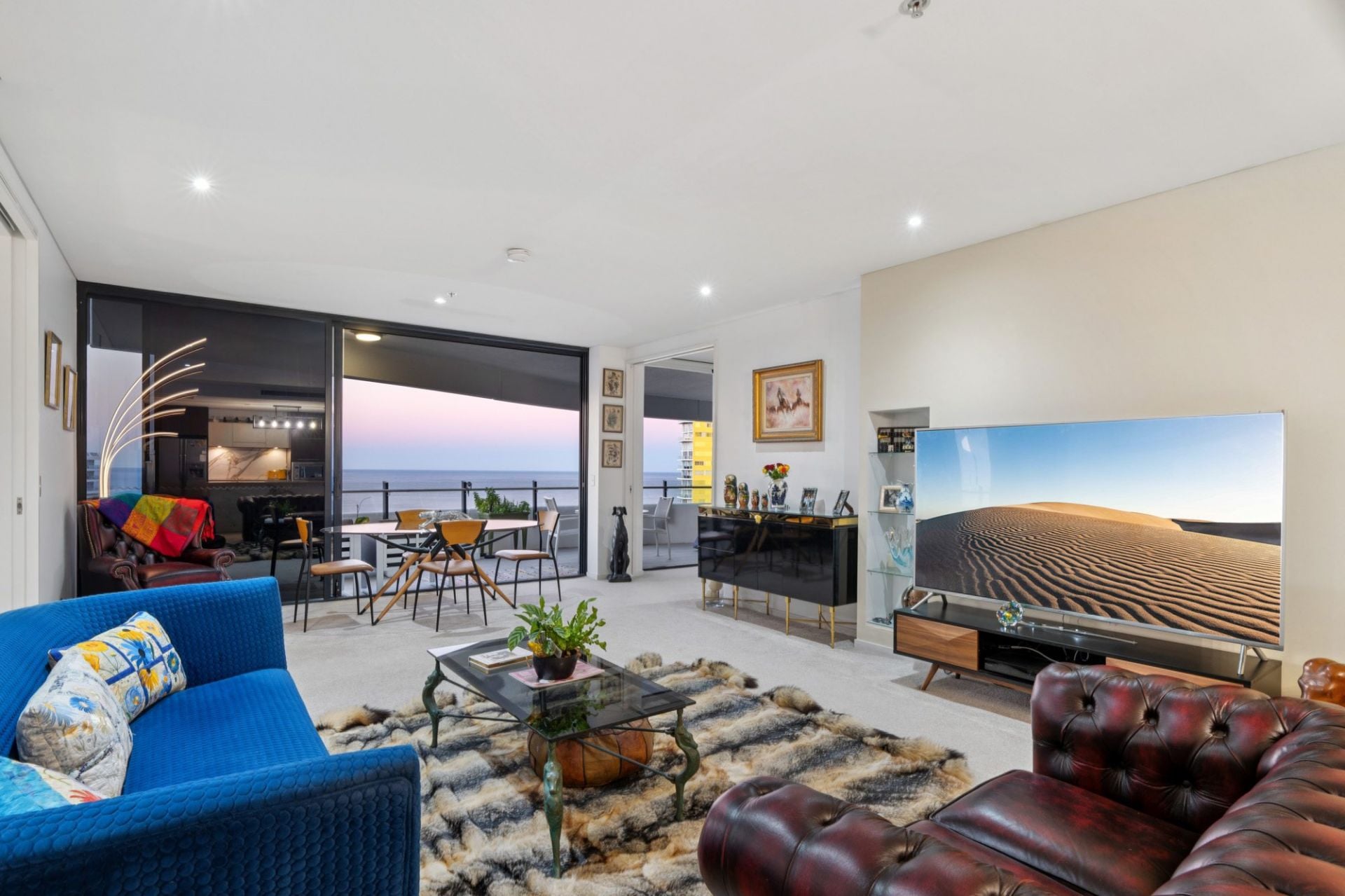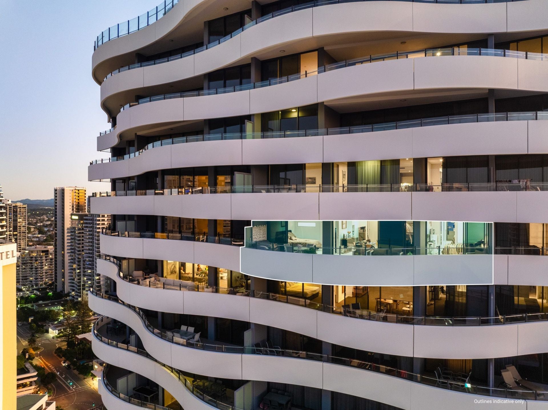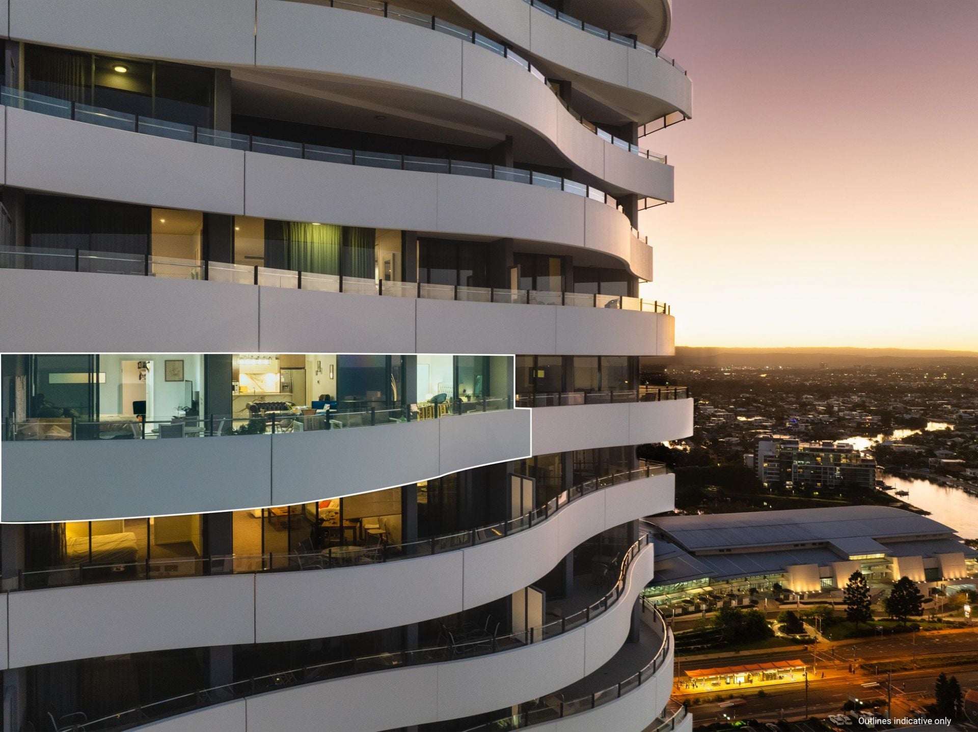 Whether you're enjoying your morning coffee as the sun rises over the ocean, or toasting the day with a glass of wine as the city lights dance below, the sweeping wraparound balcony provides the ultimate vantage point to appreciate the Gold Coast in all its beauty. These are views that transform throughout the day and night, offering an ever-changing backdrop of light, colour, and atmosphere - a constant reminder that you've arrived at something truly special.