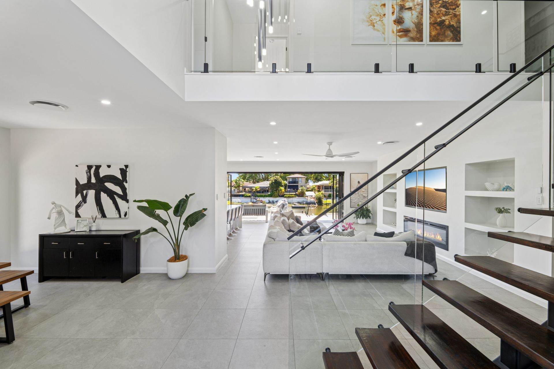 Step into the dramatic foyer crowned by a soaring void and chandelier, where open-plan interiors flow seamlessly to the waterfront terrace. The heart of the home is the gourmet kitchen - fitted with premium appliances, a butler's pantry, and a sleek bar - perfect for hosting evenings that linger long into the night.