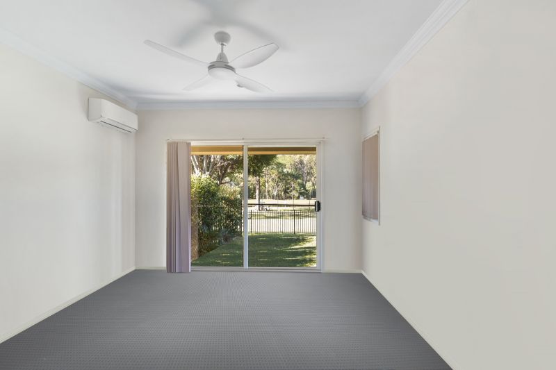 Step inside to discover a thoughtfully designed floor plan. The chef's kitchen, featuring granite benches, an electric cooktop, and ample pantry space, caters to culinary enthusiasts. Seamlessly connected to the outdoors through expansive sliding doors, the separate livings and dining areas invite the splendor of nature indoors. The villa boasts the largest garden in the community, with an undercover space perfect for hosting guests, all while soaking in the tranquil ambiance amidst grazing kangaroos and an array of birdlife.