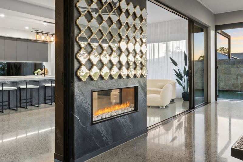 • Covered alfresco with polished concrete flooring and double-sided fireplace