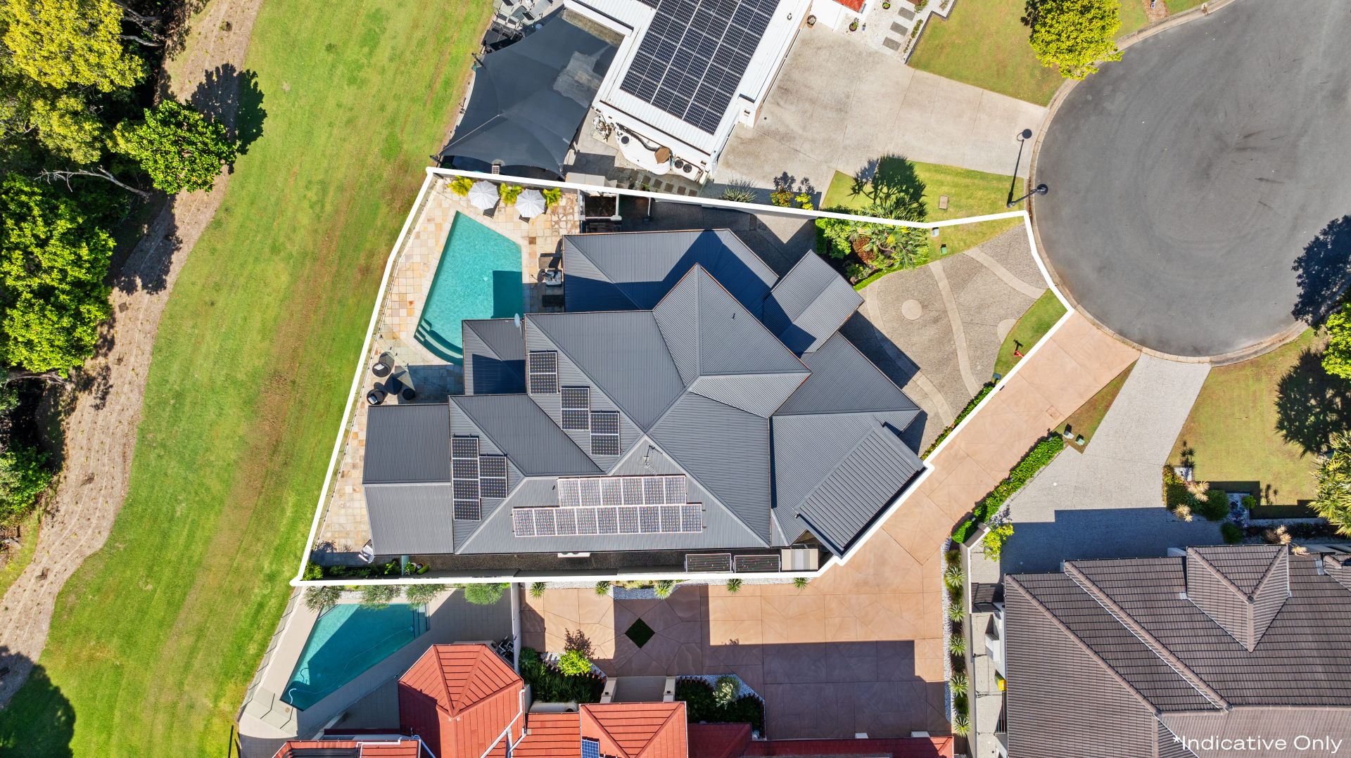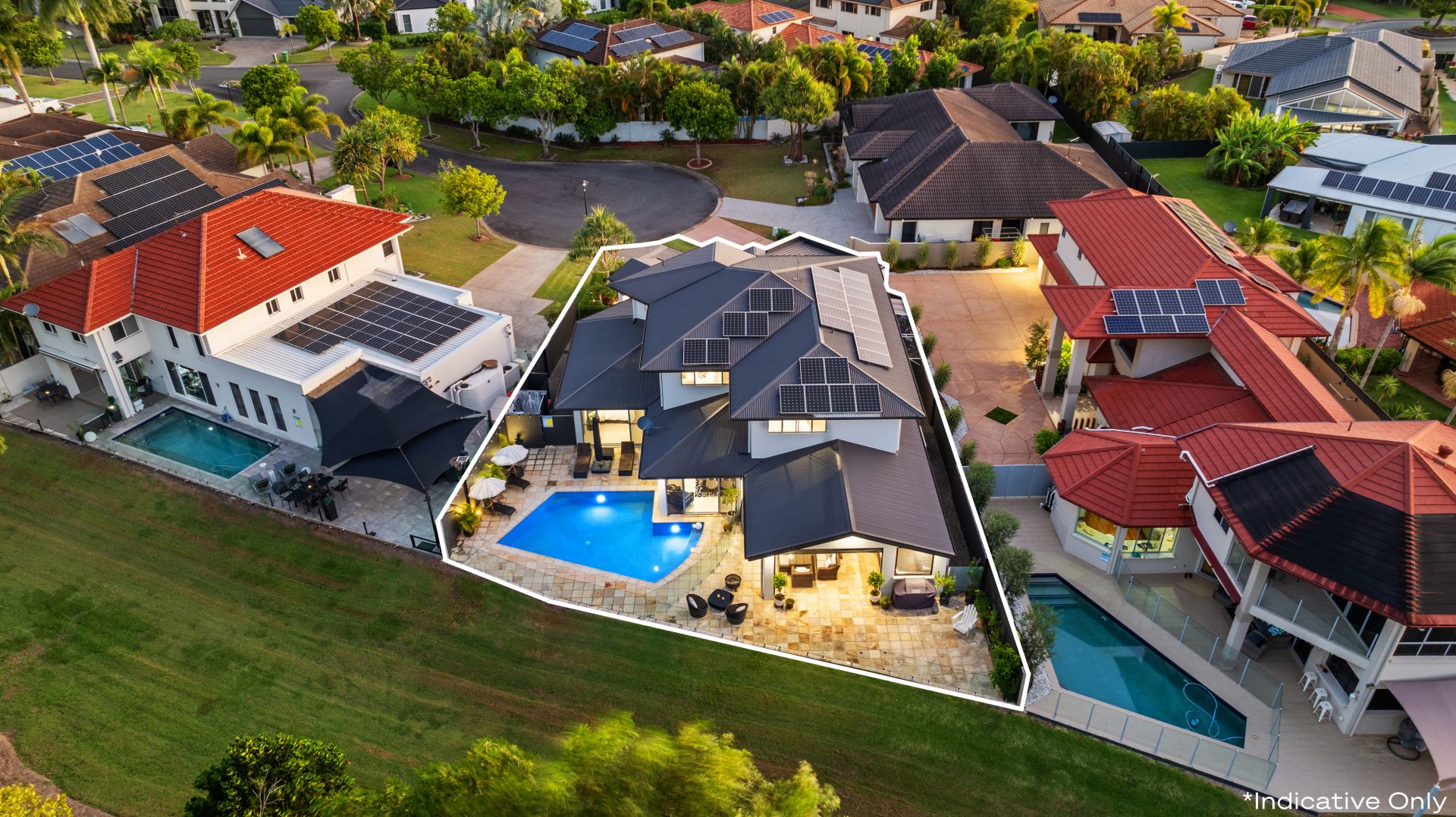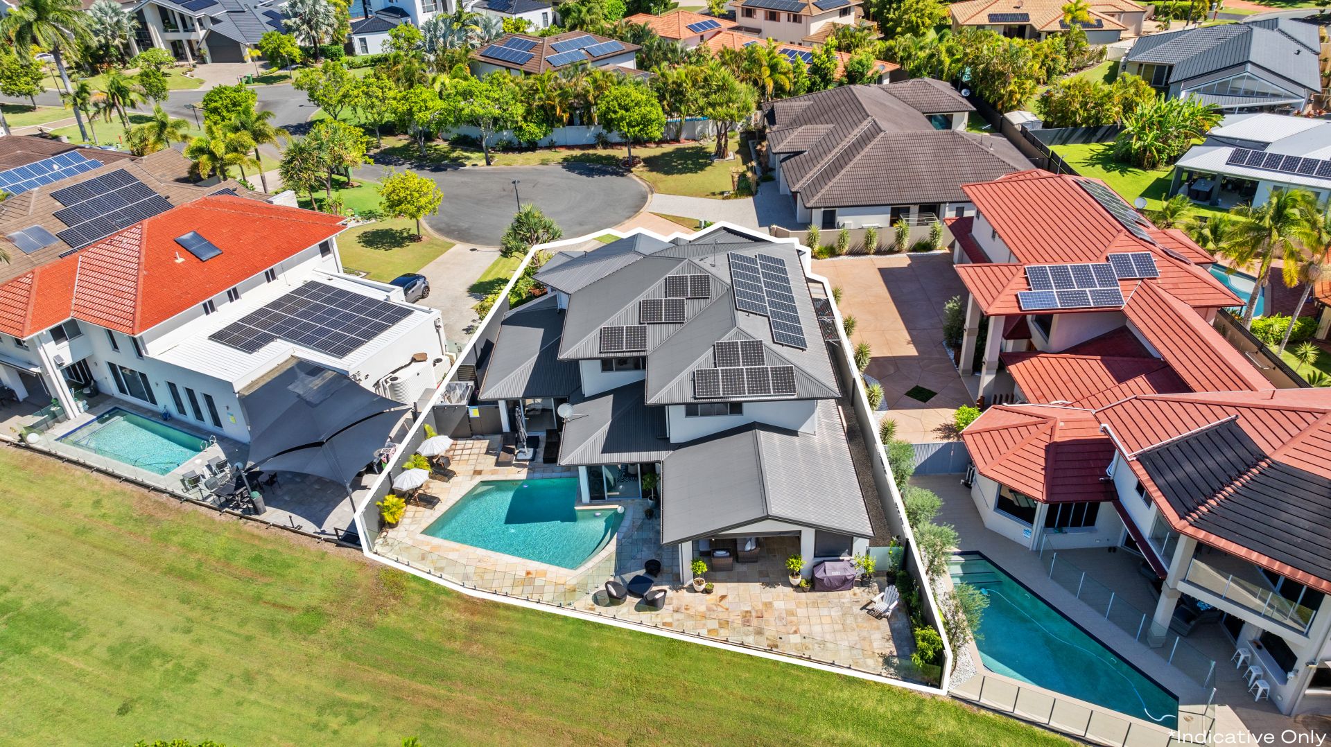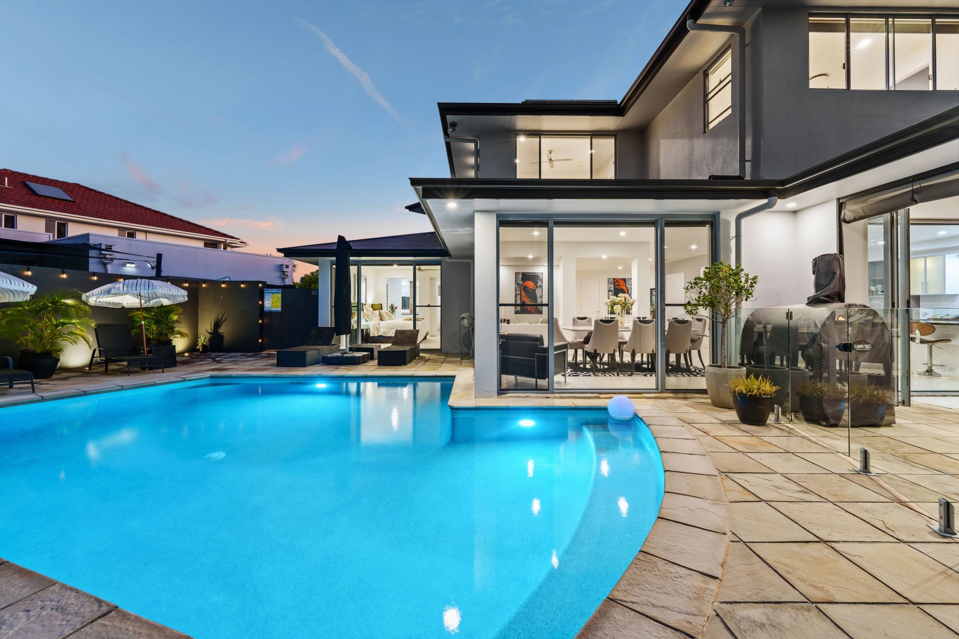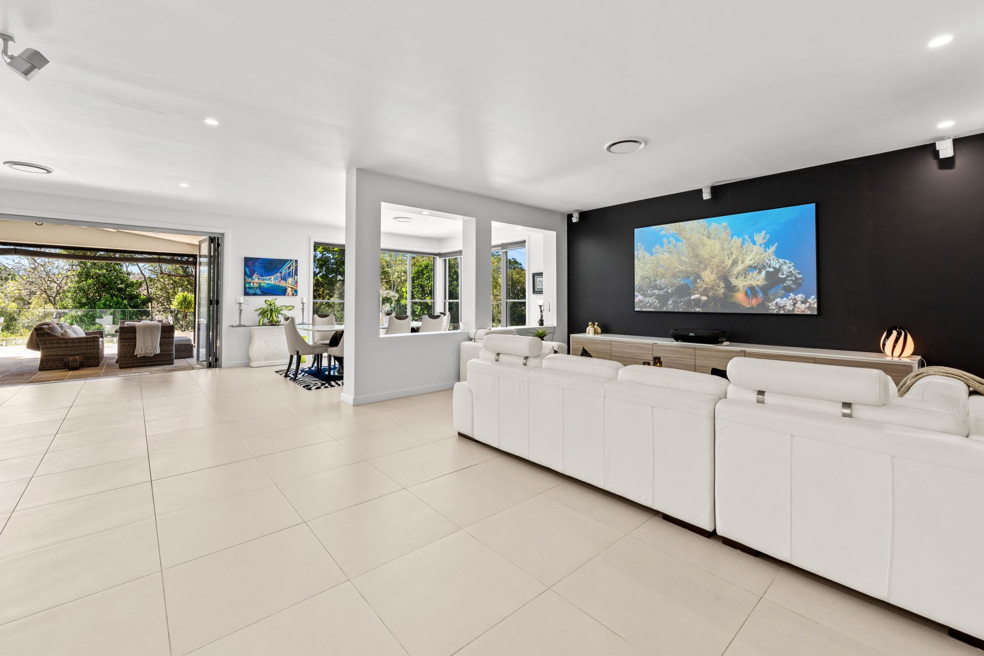- Expansive open-air terrace adjoins the saltwater pool, both lined with glass fencing
