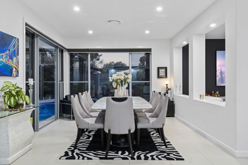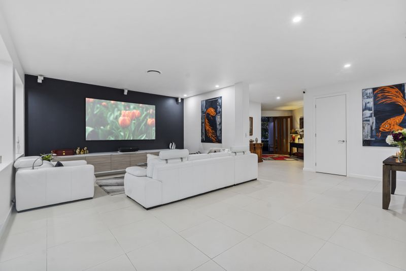 Evoking a soothing resort-style ambiance, it is also designed for effortless entertaining. The first-class alfresco pavilion seamlessly integrates with the internal kitchen, living, and dining zones, blurring the boundaries between indoors and out. Each space is expertly appointed, featuring a modern 900mm Fisher & Paykel induction hot plates and oven inside and a stainless steel teppanyaki grill outdoors, ensuring casual get-togethers or large-scale celebrations can be catered with ease.
