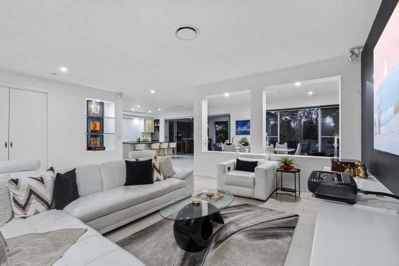 Tucked away within the sought-after Calmwater Shores and in a quiet cul-de-sac, it's part of a gated estate with security patrols, wonderful community spirit and great neighbours. Public and private schools, sporting amenities and public transport are close, as is access to Hope Island Marketplace. Those who love getting on the greens will appreciate the proximity to three championship golf courses at Hope Island and Sanctuary Cove, plus make the most of being near boat ramps and the M1.