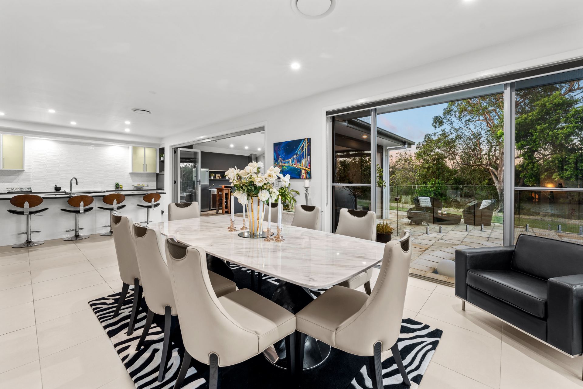 - Designed with a seamless and superior indoor-outdoor flow, as if the alfresco pavilion was a natural part of the kitchen/living/dining zone