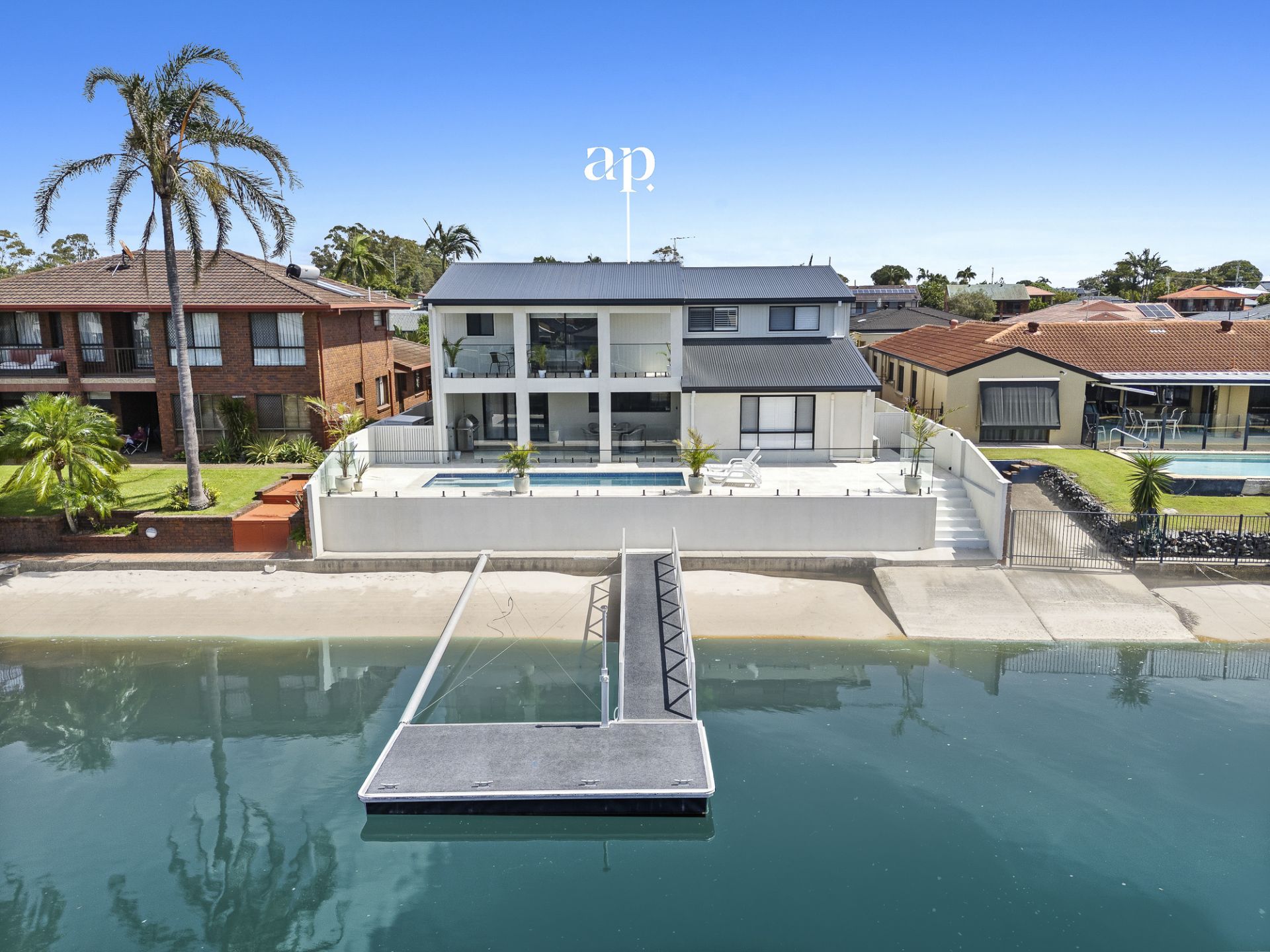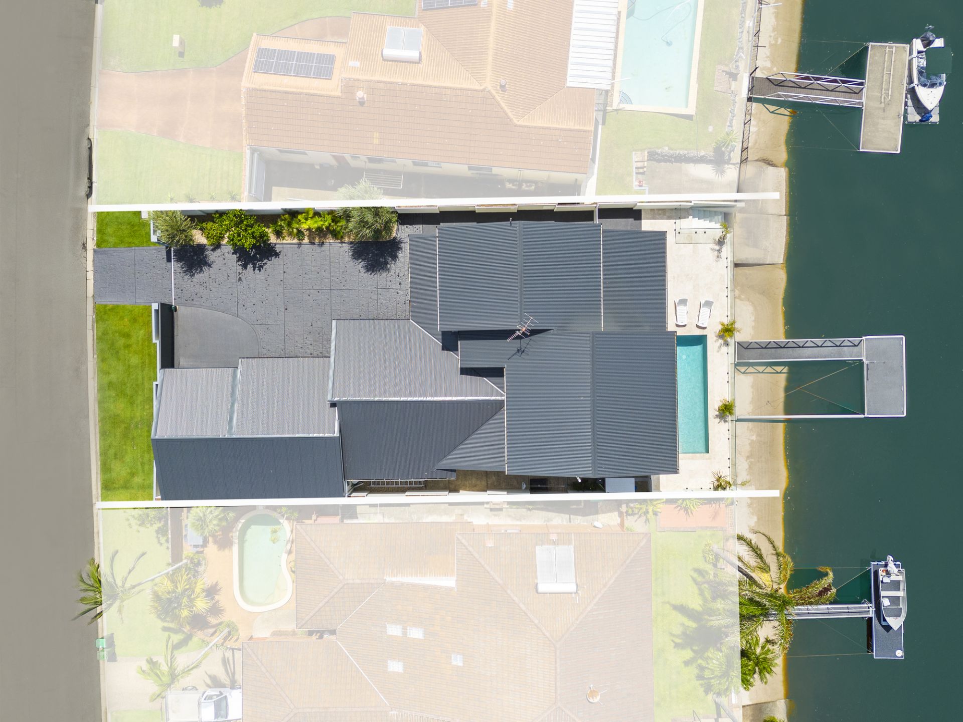 • 18-metre water frontage with gentle morning sun and comfortable afternoon shade