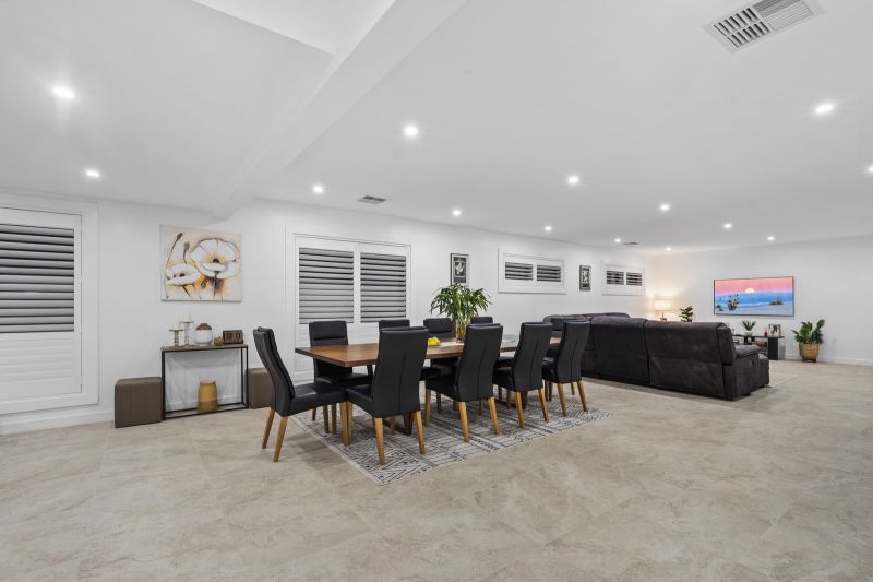 Boasting six spacious bedrooms and three and a half bathrooms, this home provides ample space for family and guests alike. Two separate living and dining areas cater to both formal gatherings and casual family time, while the brand-new gourmet kitchen enjoys uninterrupted views of the backyard, allowing you to easily supervise children as they swim in the 7-metre by 2.5-metre magnesium pool.