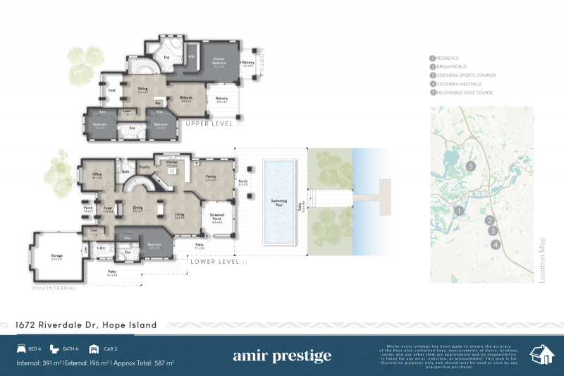 • Sweeping drive leading off from one of Hope Island's lovely tree lined streets