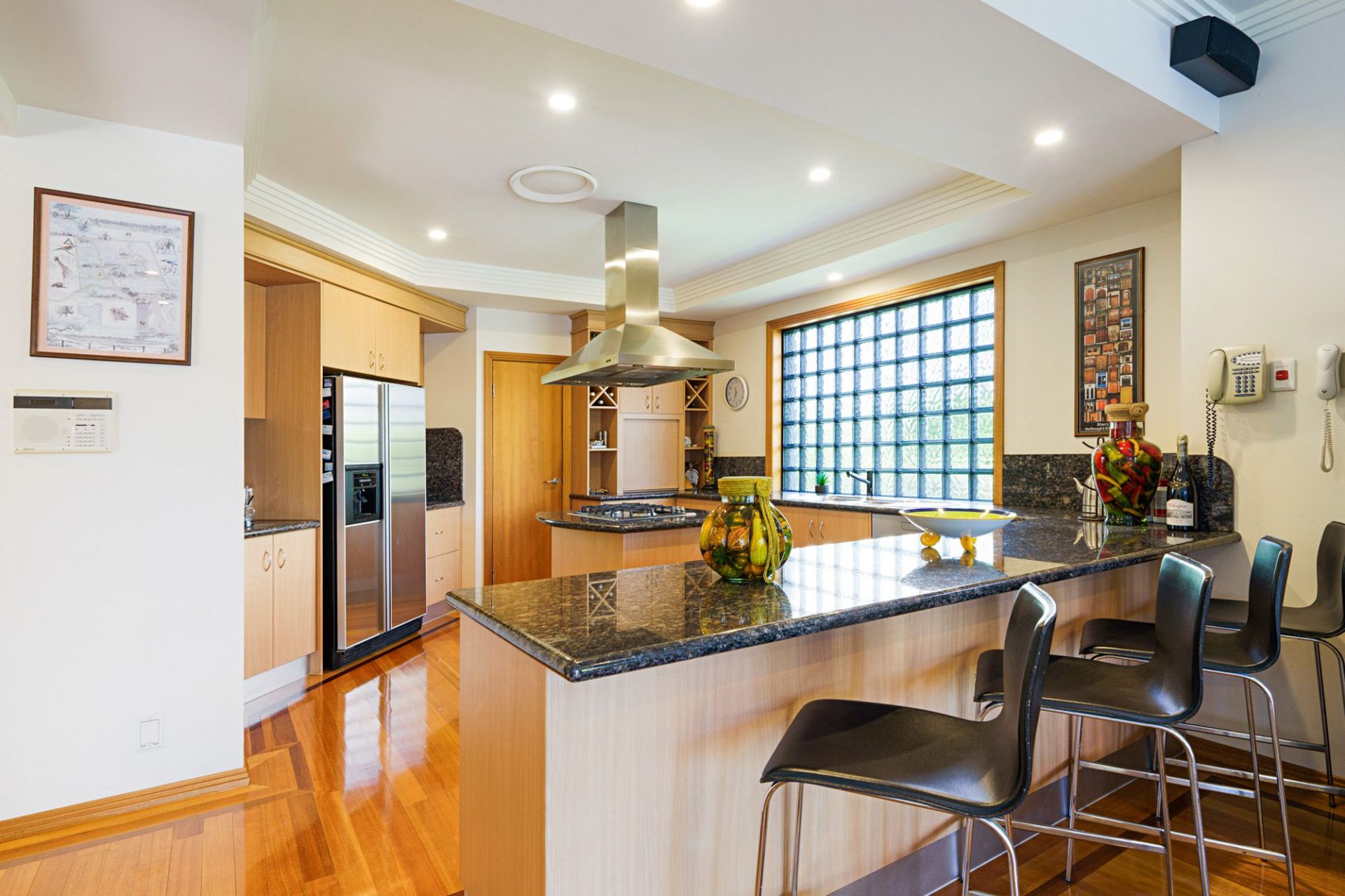 • Fully equipped kitchen with breakfast bar and island leading, off to large pantry
