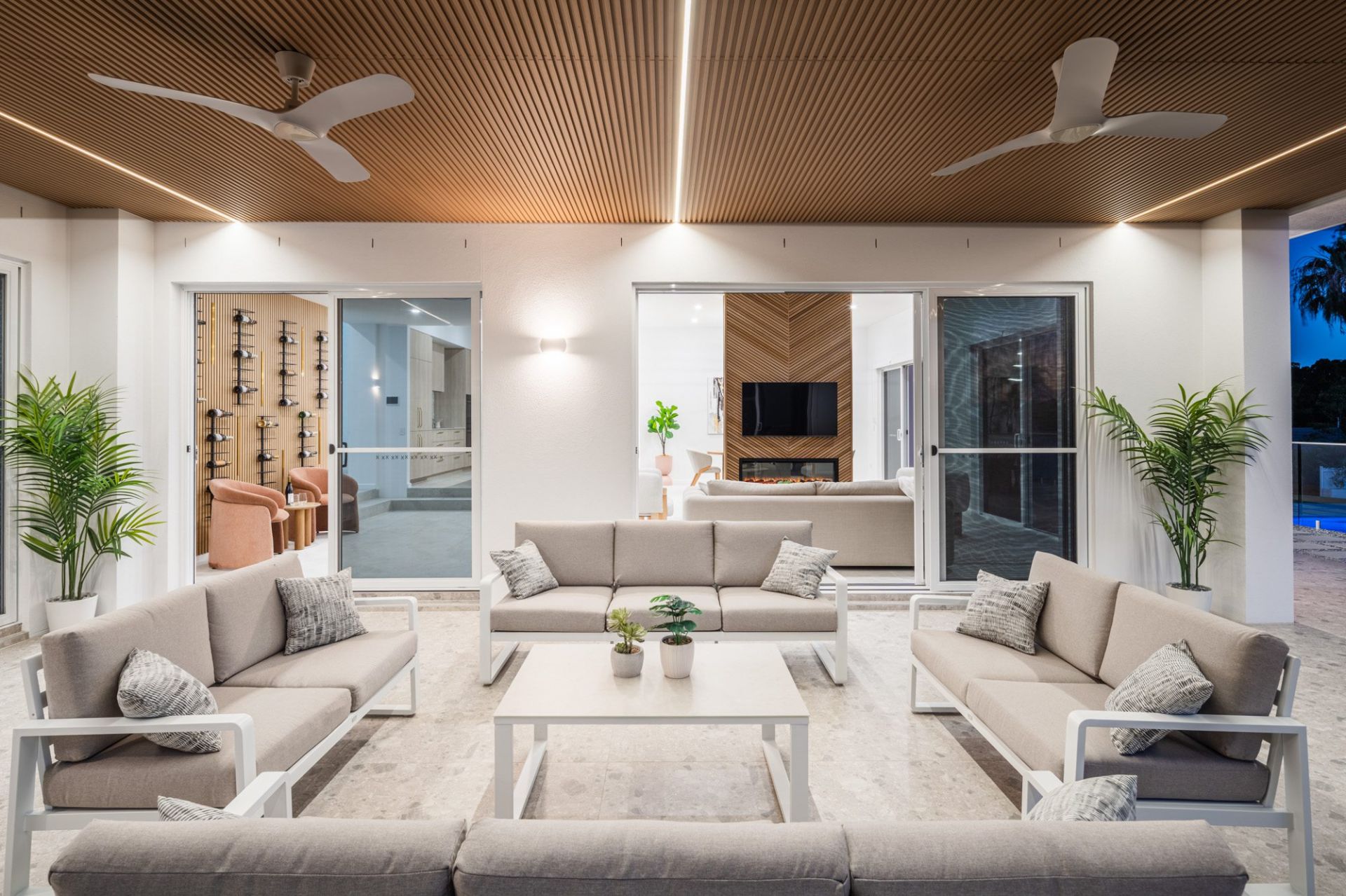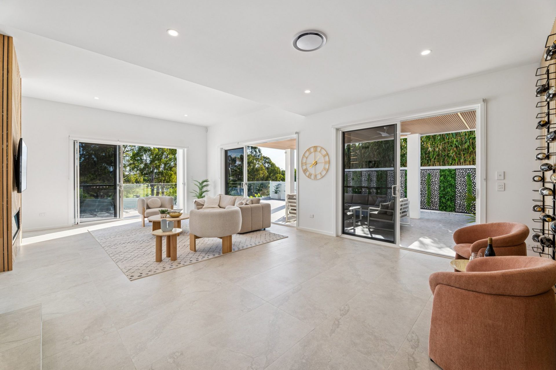 The versatile floor plan adapts seamlessly to both family living and sophisticated entertaining. Expansive open-plan zones flow to multiple alfresco areas, a statement wine display anchors the dining space, and the media room with acoustic panelling offers true cinematic immersion.