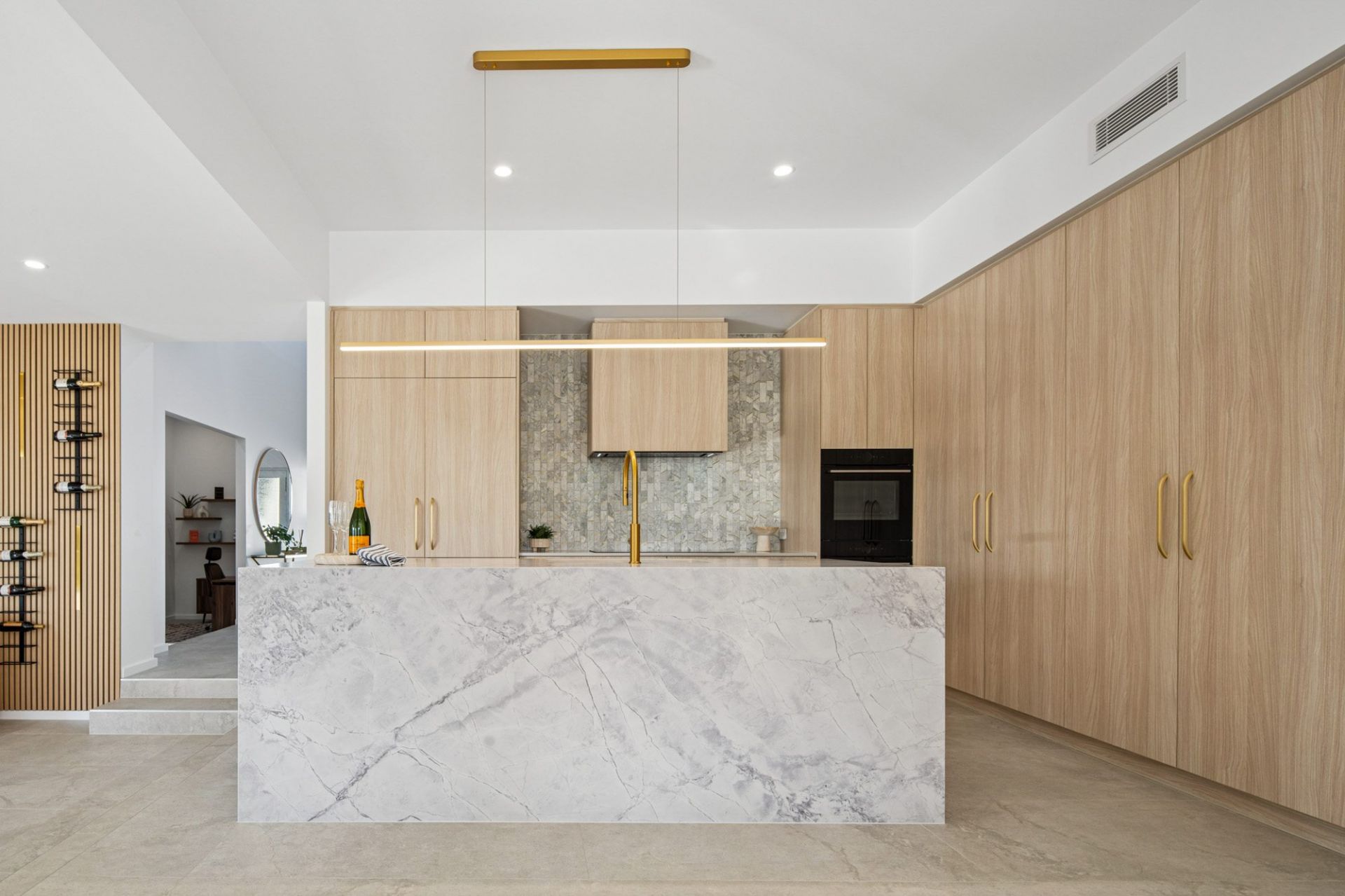Inside, ÉLAN reveals bespoke craftsmanship throughout. Soaring 3.3-metre ceilings, light-filled voids, and refined designer finishes create interiors that feel both striking and timeless. Marble, timber, Carrara stone, custom joinery, and feature lighting have been thoughtfully curated to ensure the home feels complete, considered, and enduring.