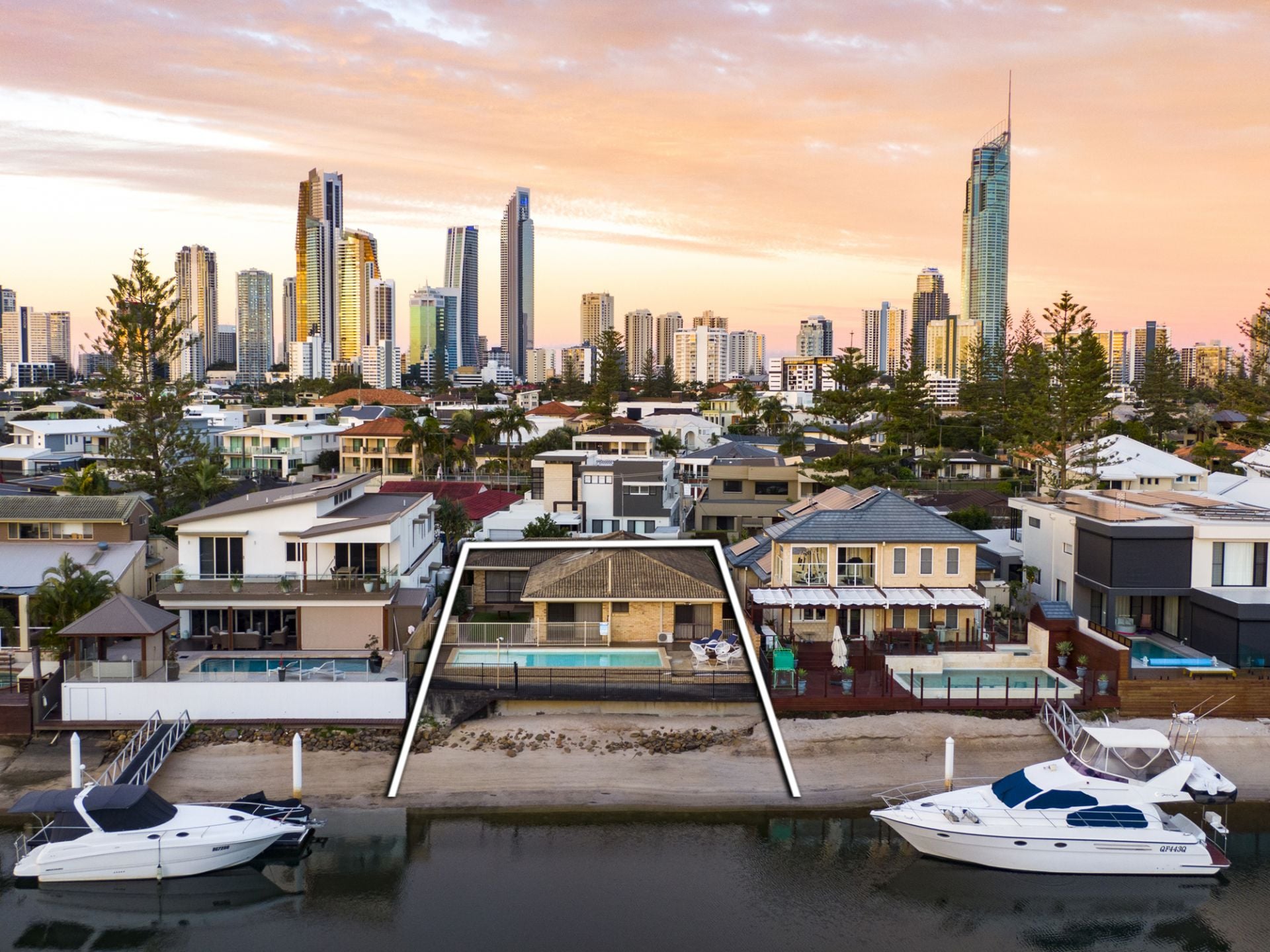 Showstopping waterfront location in sough-after Gibraltar Drive nestled in prestigious Isle Of Capri. Opportunities abound with this well-presented family home. Enjoy sensational sunsets and relaxing poolside, watching the world sail past on the canal. You are just a short stroll away from your morning coffee at Via Roma shopping and dining precinct. This is an amazing opportunity and an absolute must to view!