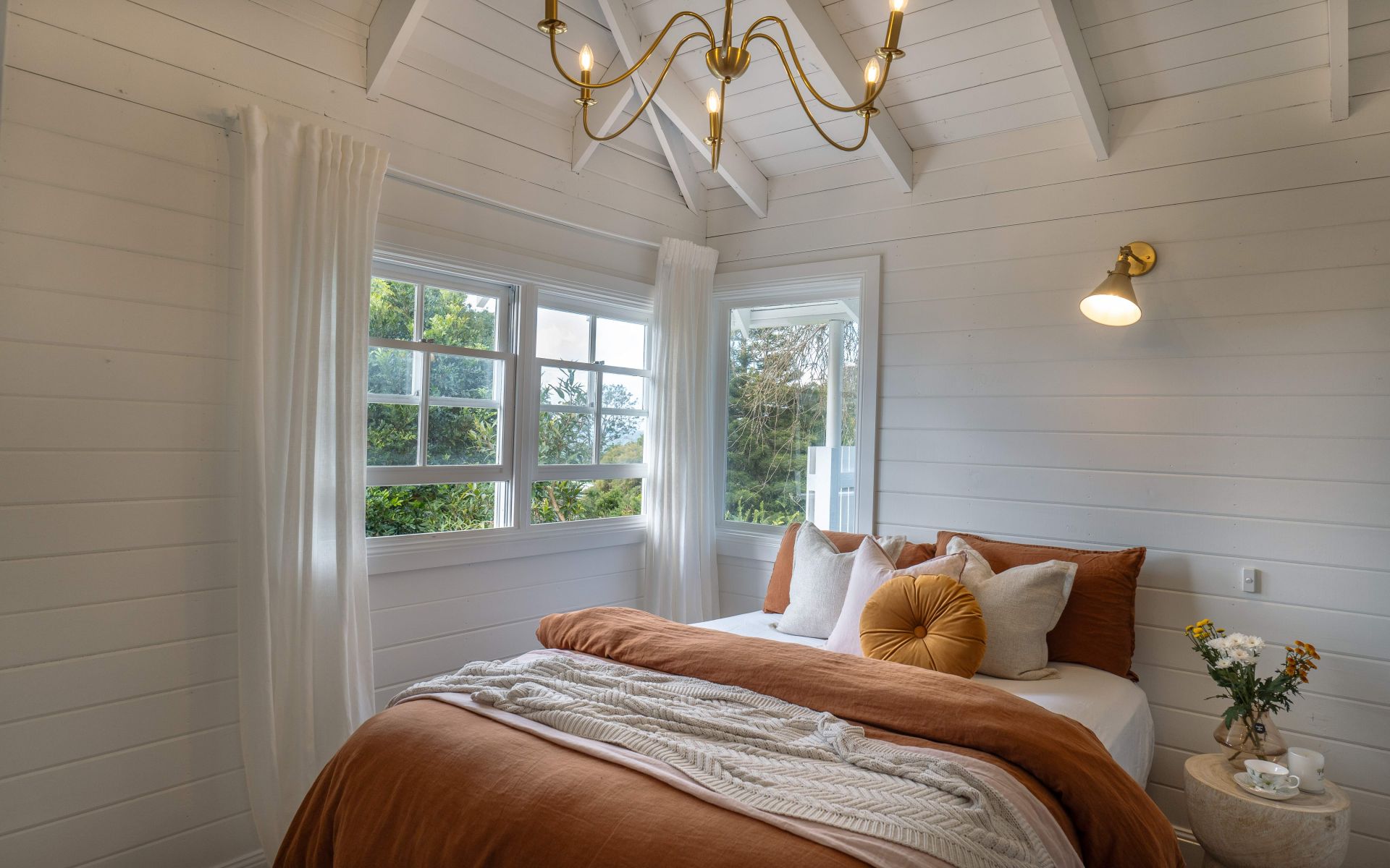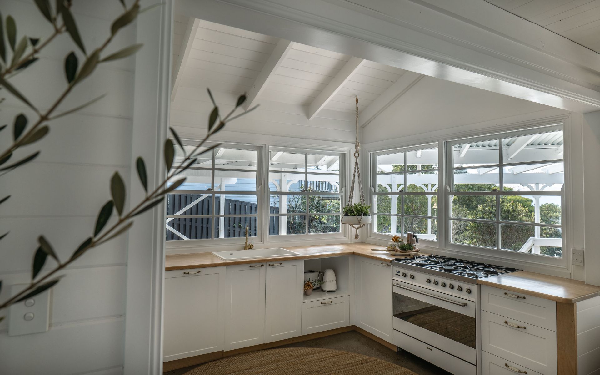 Beautifully renovated to blend original character features with modern day comforts, timber lined ceilings and exposed rafters soar over white shiplap walls and easy care flooring to present a charming sanctuary that will tug at your heartstrings. Perfect as a holiday home or hinterland retreat with exciting Airbnb potential, the open plan living and meals area highlights a cosy wood heater and reverse cycle air conditioner to ensure year round comfort within the picture perfect lounge, bathed in natural light from the walls of French doors and windows offering verdant treescape vistas with ocean views and city skyline glimpses from the elevated alfresco entertaining patio. The modern farmhouse country kitchen has been designed to be both functional and beautiful, with shaker-style cabinetry, integrated and gas appliances and timber benches ensuring entertaining and the every day is catered to with great ease and is complemented by a well equipped farmhouse style laundry hosting shaker style cabinetry and beautiful brushed brass character tapware.