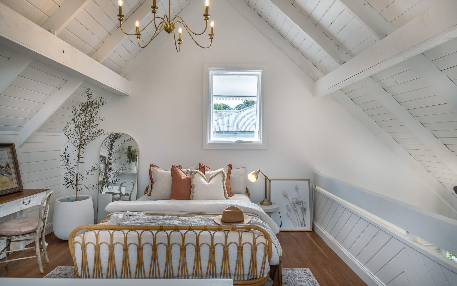 The romantic grandeur of Wild Olive Cottage continues across generous accommodations, hosting two delightful bedrooms zoned across the ground and mezzanine level. Set under feature chandeliers, they offer a private sanctuary of respite and relaxation, with a fully renovated bathroom continuing the modern farmhouse style with a frameless shower, brushed brass fittings and custom vanity. Further highlights include a fully fenced yard with electric gates upon entry for ease and convenience, secure landscaped gardens, carport, garden shed, and water tank on a generous 688m2 (approx.) parcel of land.